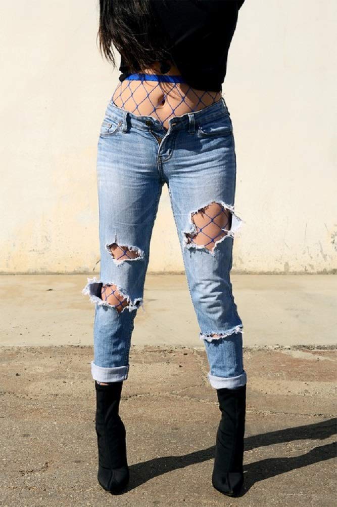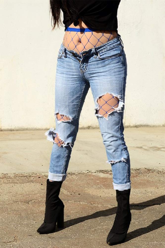 2Chique Boutique Women's Blue Single Line Fishnet Pantyhose
