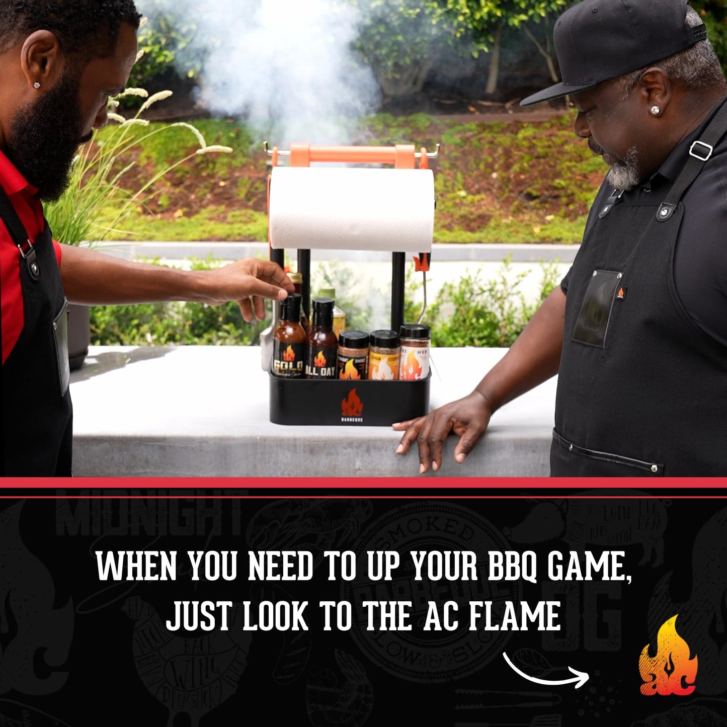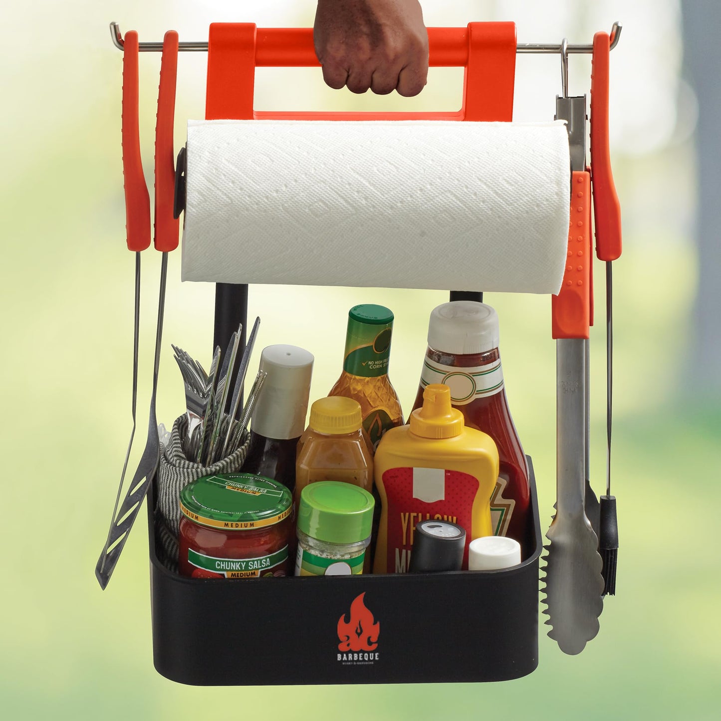 - This caddy leaves no tool, sauce, or spice behind. Everything you need to have a flaming BBQ.
