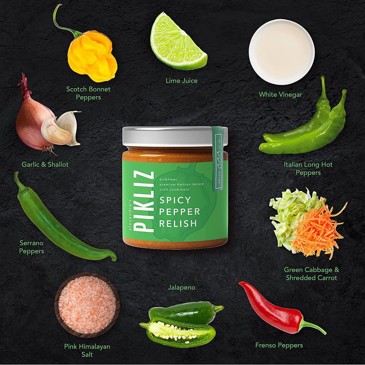 - [A Unique Recipe] Our Pikliz recipe replaces bell peppers with five chili peppers, creating a delicious pepper relish that's made in small batches with seasonal ingredients for maximum flavor.
