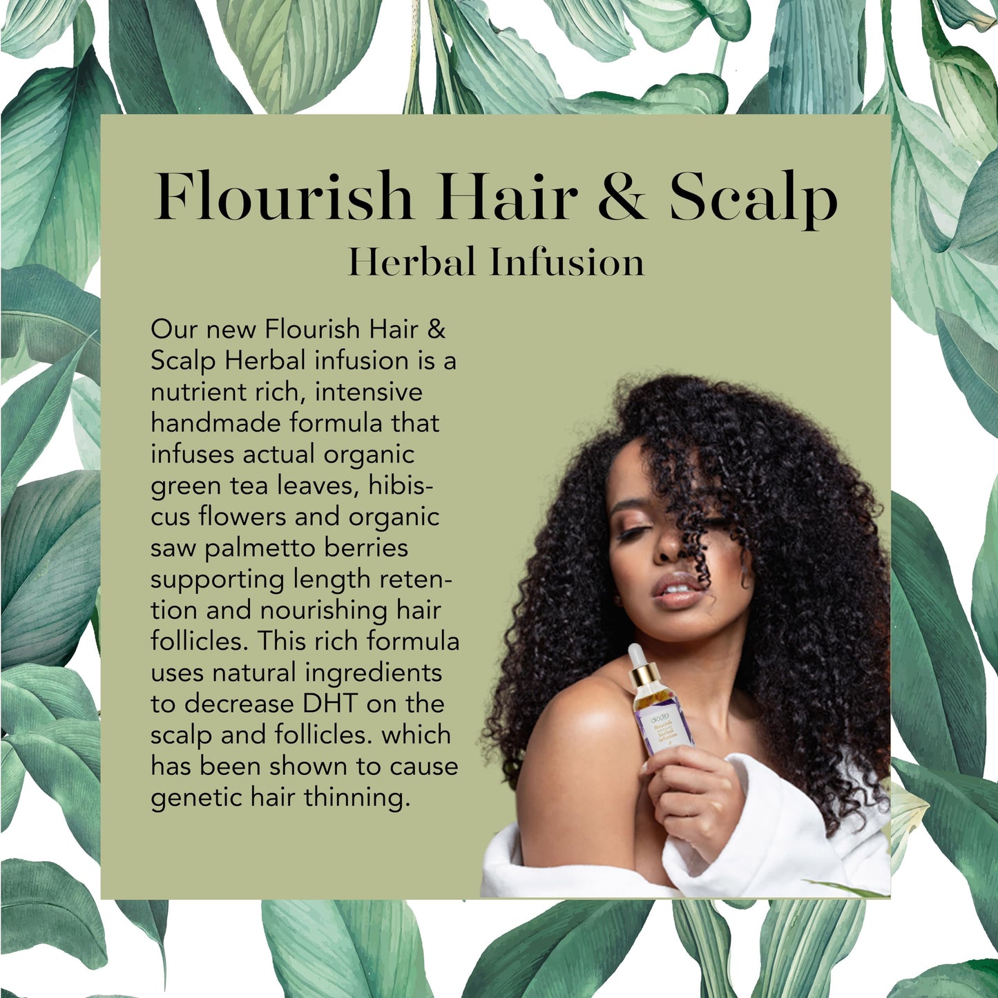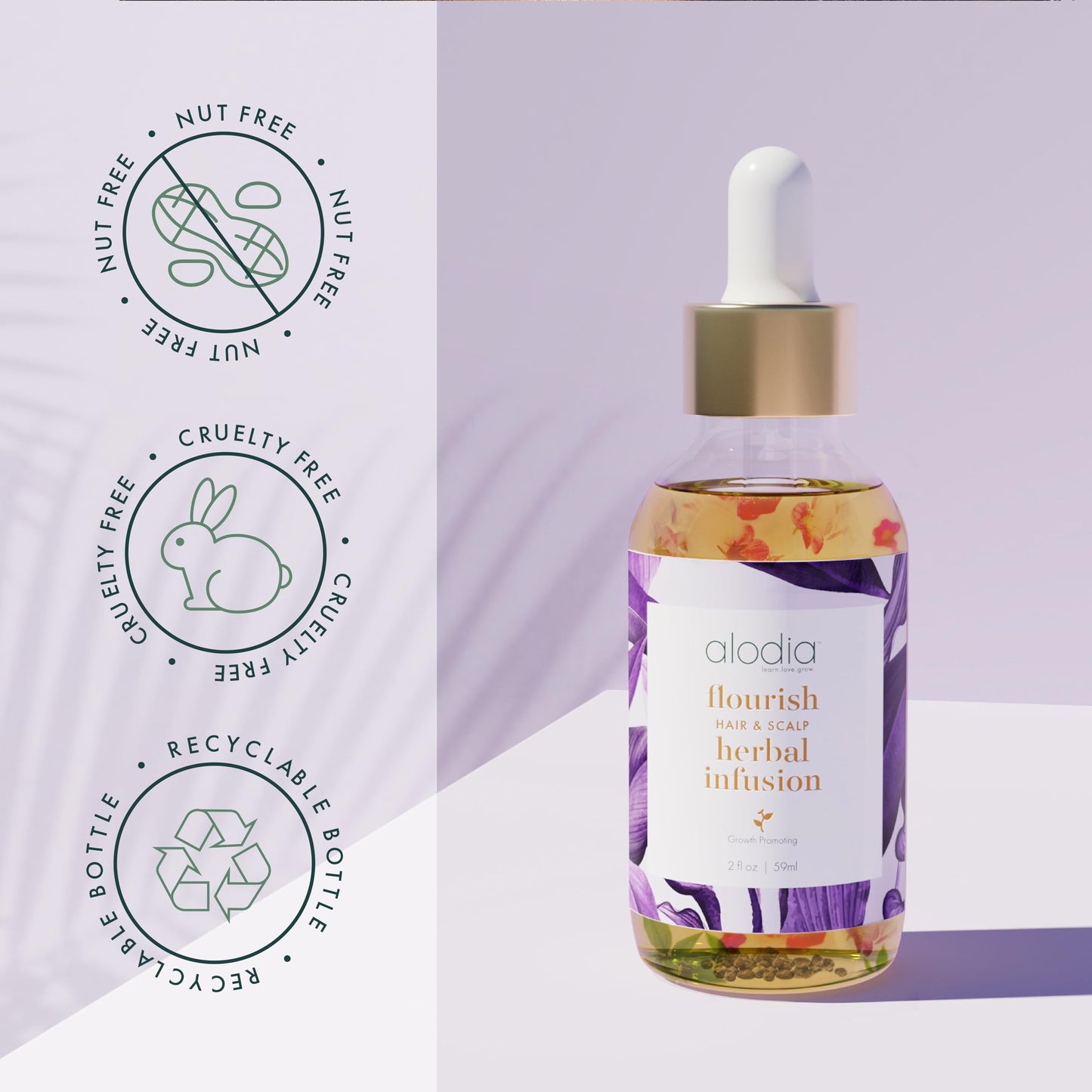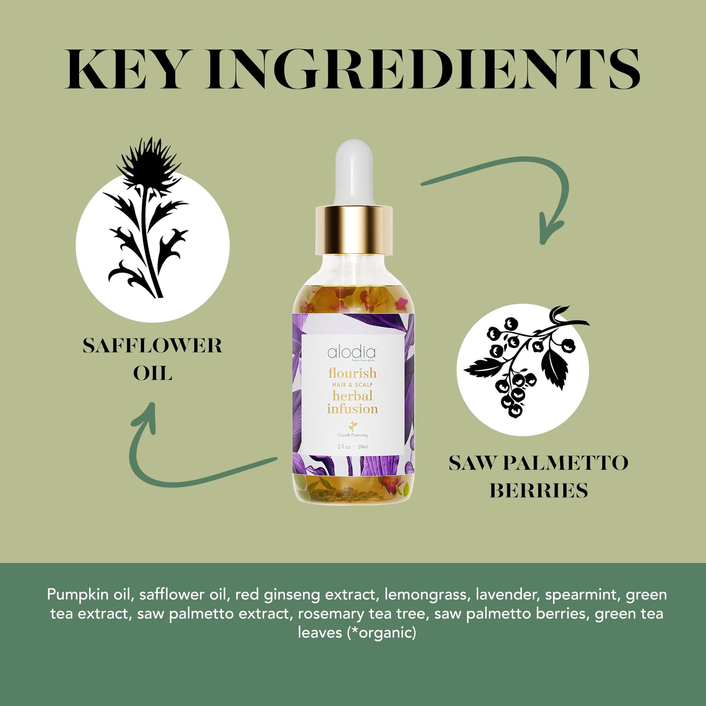 Alodia Flourish Hair & Scalp Herbal Oil Infusion - 2 oz Nut-Free Hair Growth Oil for Women & Men - Leave-On Serum with Green Tea, Saw Palmetto & Hibiscus