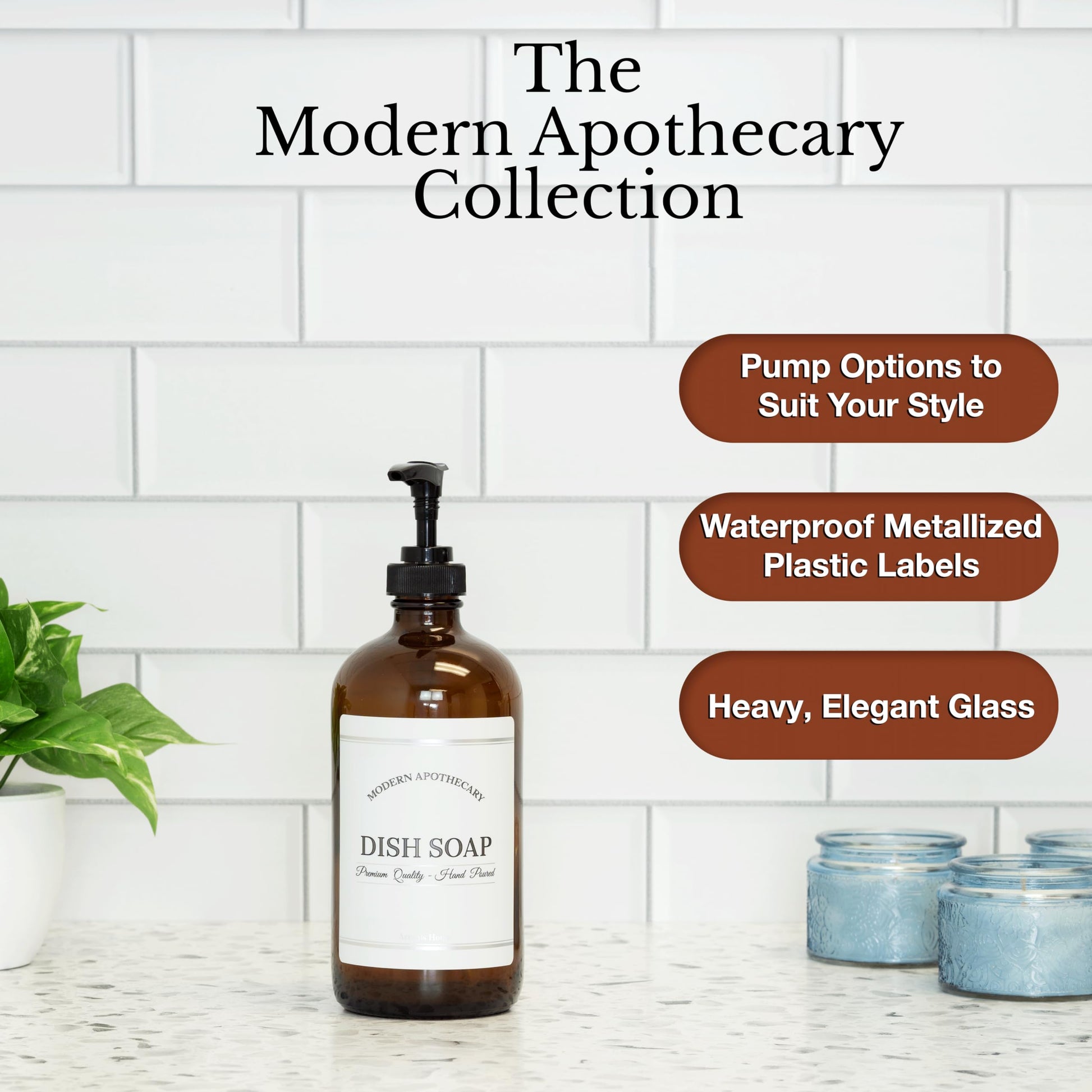 Artanis Home Amber Refillable Dish Soap Dispenser with Pump for Kitchen Sink - Glass Boston Round Dish Detergent Bottle - Waterproof Label - 16 oz