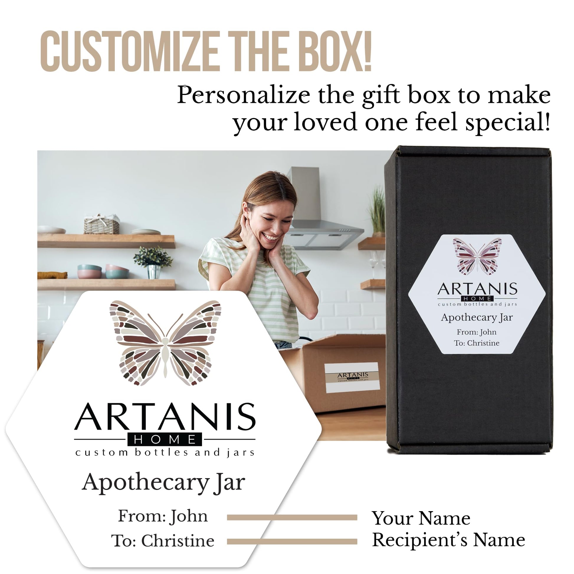 - Elegant and practical vintage style tea gift set: A gorgeous and unique gift for a tea lover or herbalist, the apothecary jar is a refillable all-glass light-filtering jar adorned with an eye-catching custom metallized or holographic label.