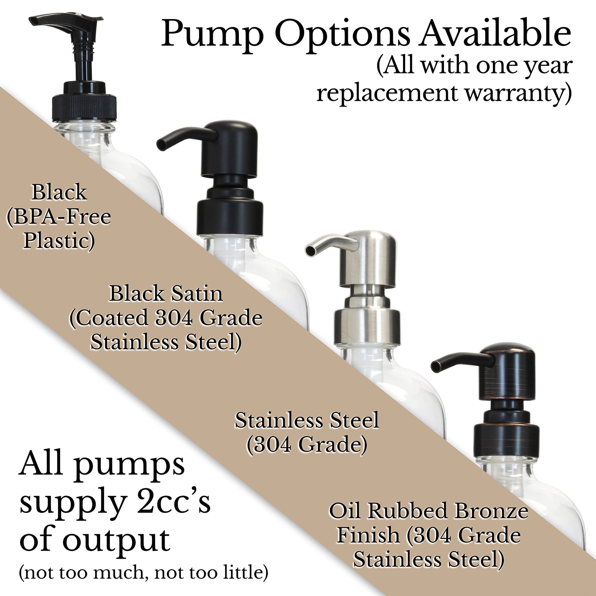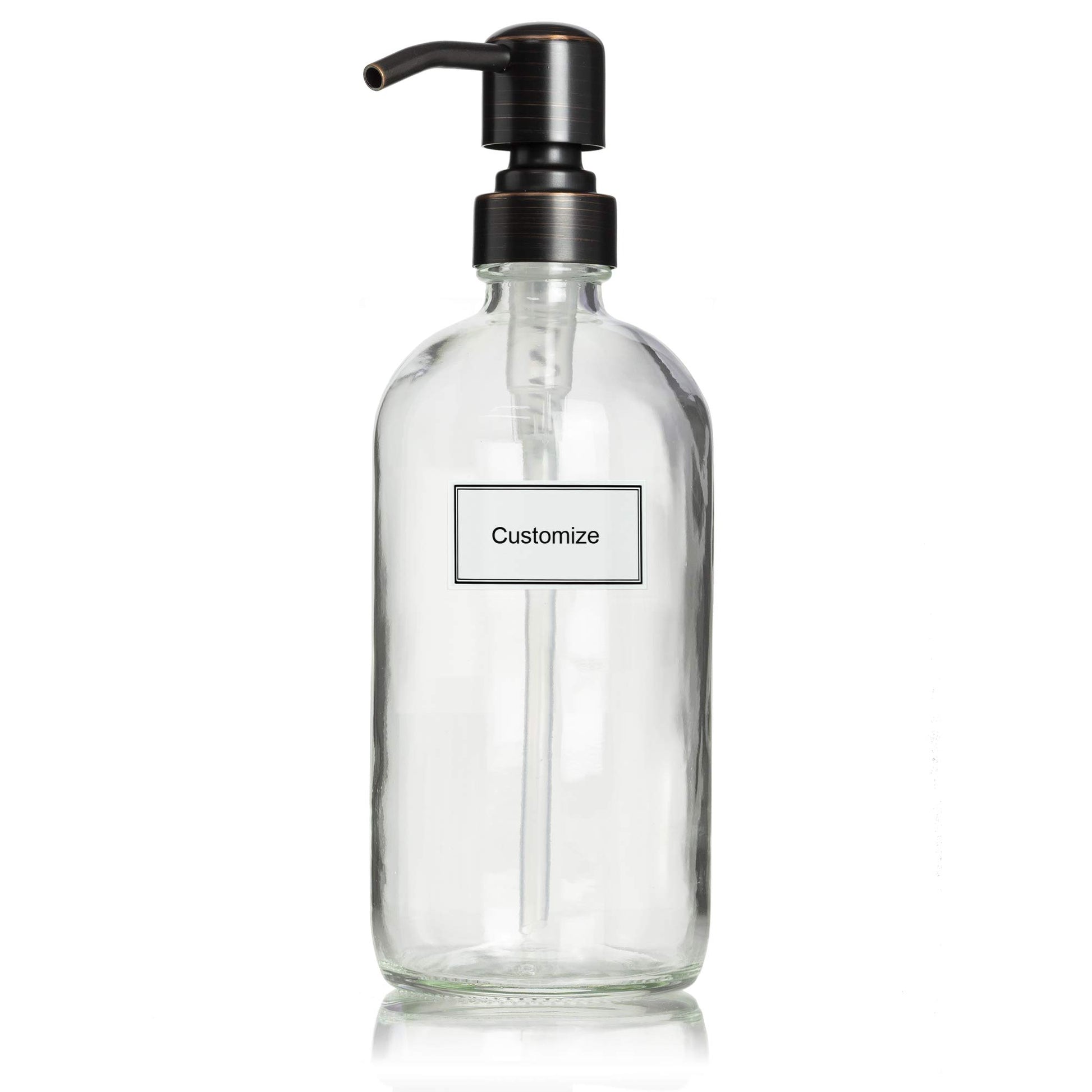 Artanis Home Glass Bottle Including Oil Rubbed Bronze Pump and Customized Waterproof Label, 16 oz Boston Round, Clear