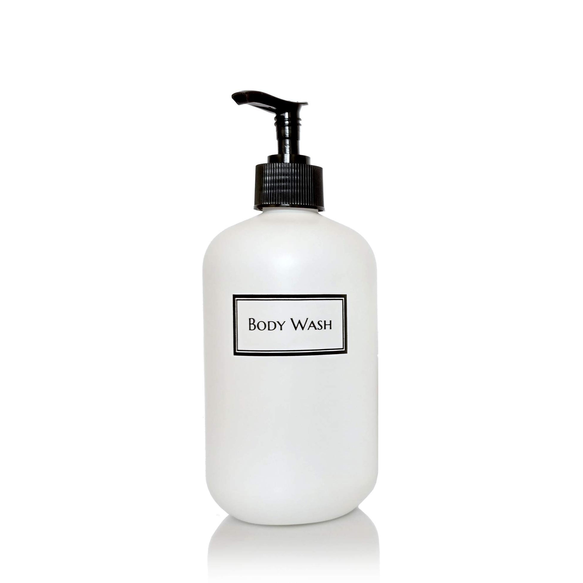 Artanis Home Silkscreened Empty Body Wash Bottle, Squat 16 oz, White (Black Pump)