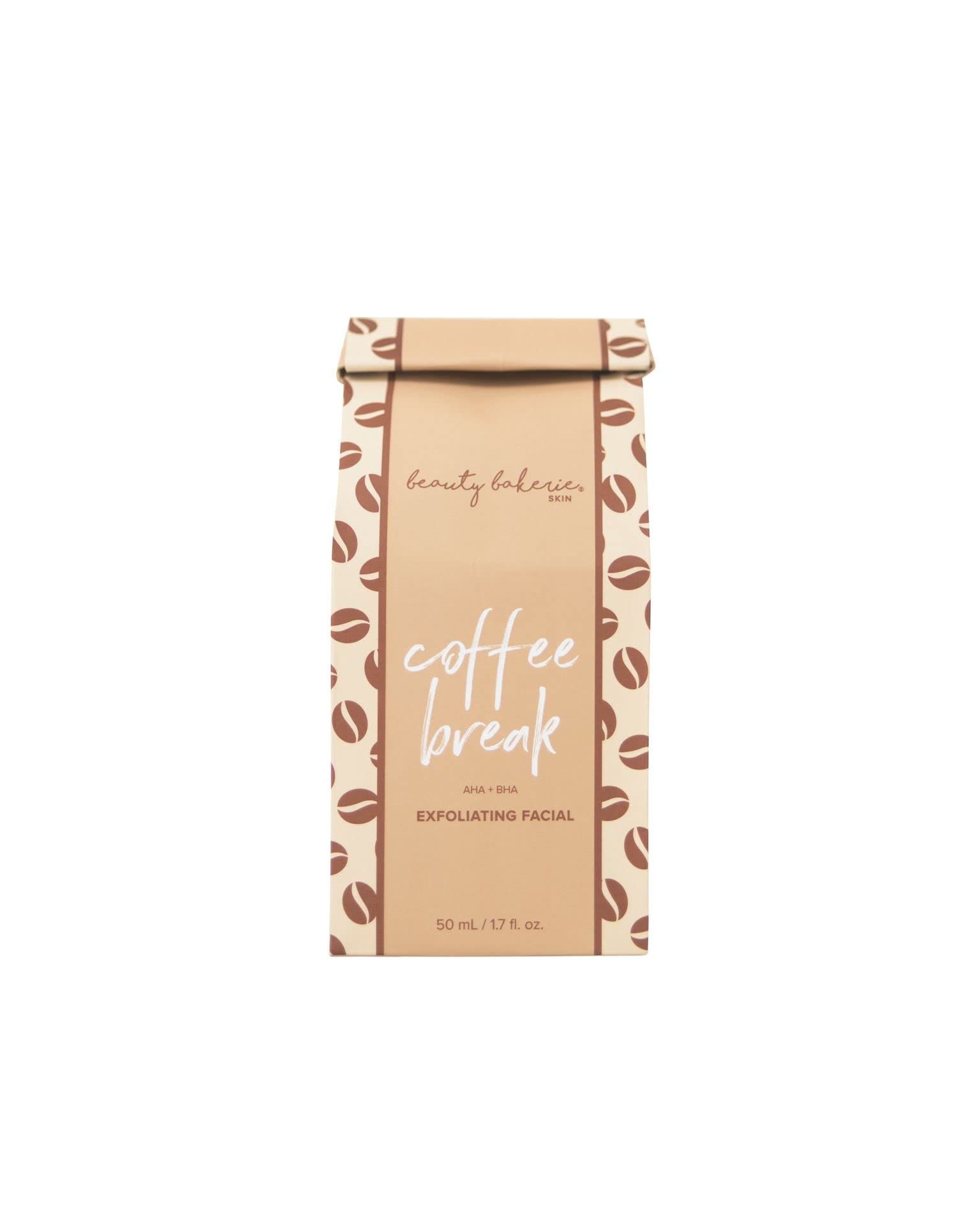 - FACIAL EXFOLIATOR FOR GLOWING SKIN: Experience smooth, radiant skin with Beauty Bakerie Coffee Break AHA + BHA Exfoliating Facial. Our gentle exfoliator uses a powerful combination of acids to resurface and clarify skin, removing dead cells and impurities for a glowing, refreshed complexion without irritation.