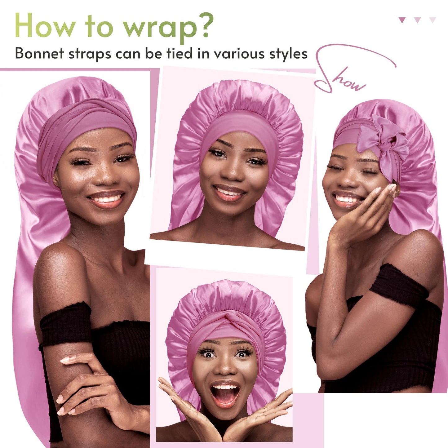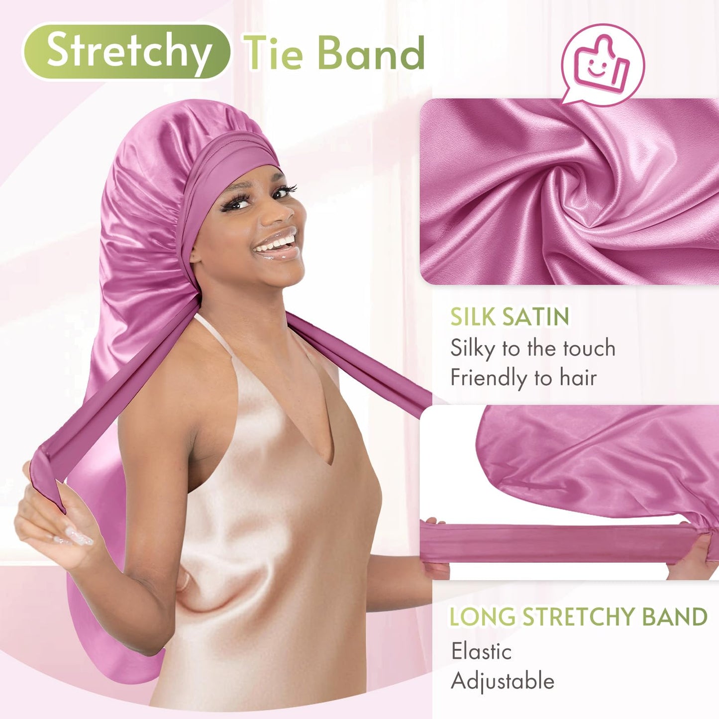 - Smooth Silk Hair Bonnet: The extra long silk bonnet is made of good texture silky satin, which is breathable and smooth; Hair bonnets for sleeping keep hair from knotting, protecting the luster of the hair.