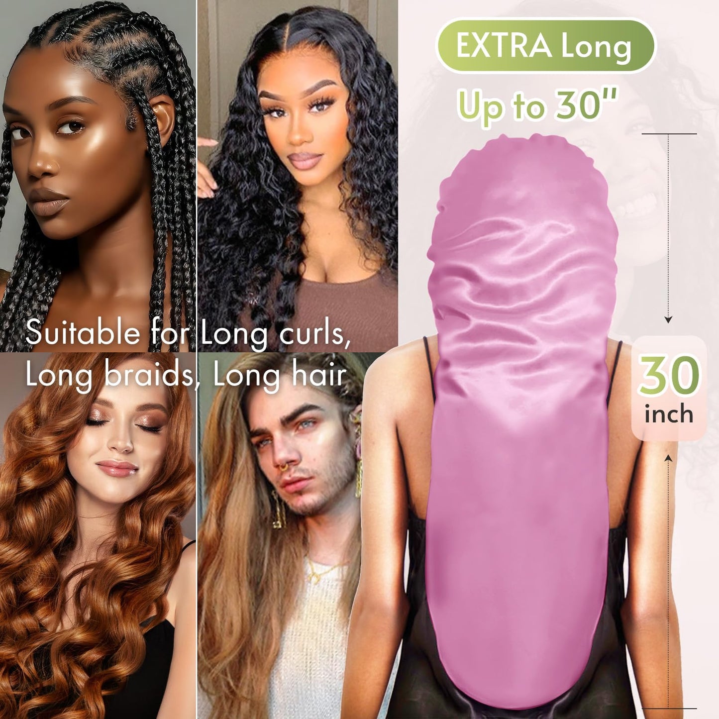 - Braid Bonnet for Long Hair: Extra large size hair bonnet that fully covers long hair, the length of this silk bonnet for braid: 30”, width: 13”, long enough to hold various braids or long curly hair, and long natural hair, etc.
