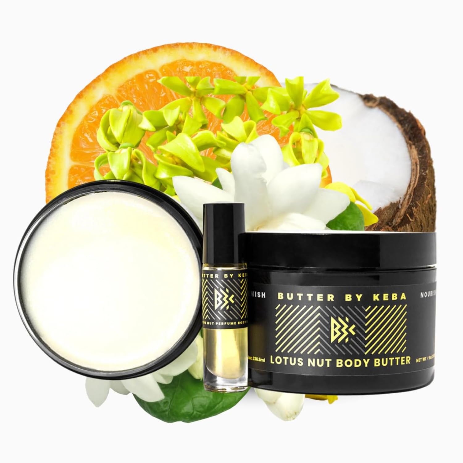 Butter By Keba Lotus Nut Large Luxury Body Care Bundle Exotic Jasmine Coconut and Sweet Orange