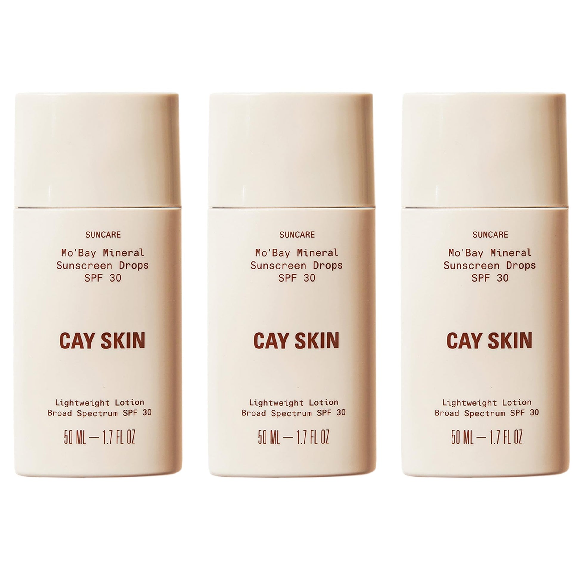 Cay Skin Mo'Bay Mineral Sunscreen Drops SPF 30 – Broad Spectrum Face Sunscreen & Makeup Primer – Lightweight, Moisturizing, Reef Safe Lotion with Natural Finish for All Skin Types – 3-Pack, 1.7 oz.