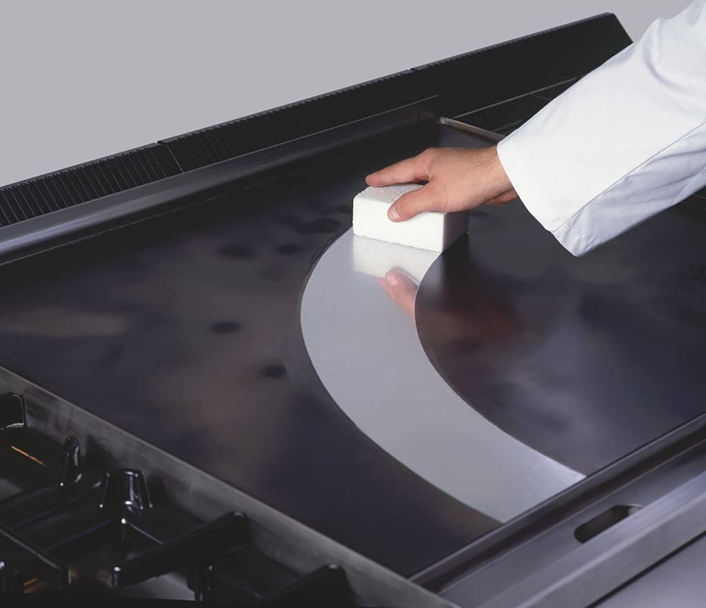 The manufacturing process makes it a totally hygienic product with powerful properties removing encrusted grease and dirt from oven trays, pans, bottoms of pots and skillets, burners, pizza pans, cookie sheets, Dutch ovens, cast iron skillets, and other kitchen or cooking utensils made of iron or steel. Not for use with non-stick cookware.