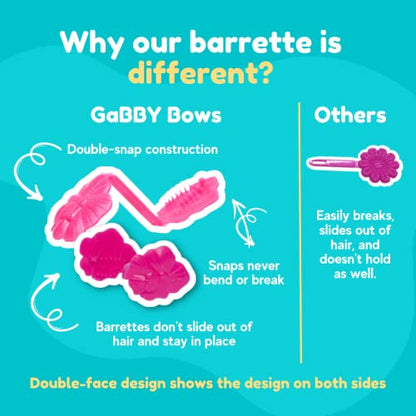 - NO MORE LOST BARRETTES: Our patented double snap construction keeps the barrettes in their place all day long, preventing slide outs and making it difficult for your little one to pull them out. Best of all, our snaps won’t break and will withstand daily use.