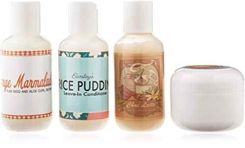 Details: The Ecoslay sample set is a great way to try several Ecoslay goodies before purchasing full-size products! The sample set includes 2oz bottles of the following: - Orange Marmalade flaxseed and aloe curl definer - Rice Pudding leave-in conditioner and moisturizer - Chai Latte cleanser - Banana Cream deep conditioner