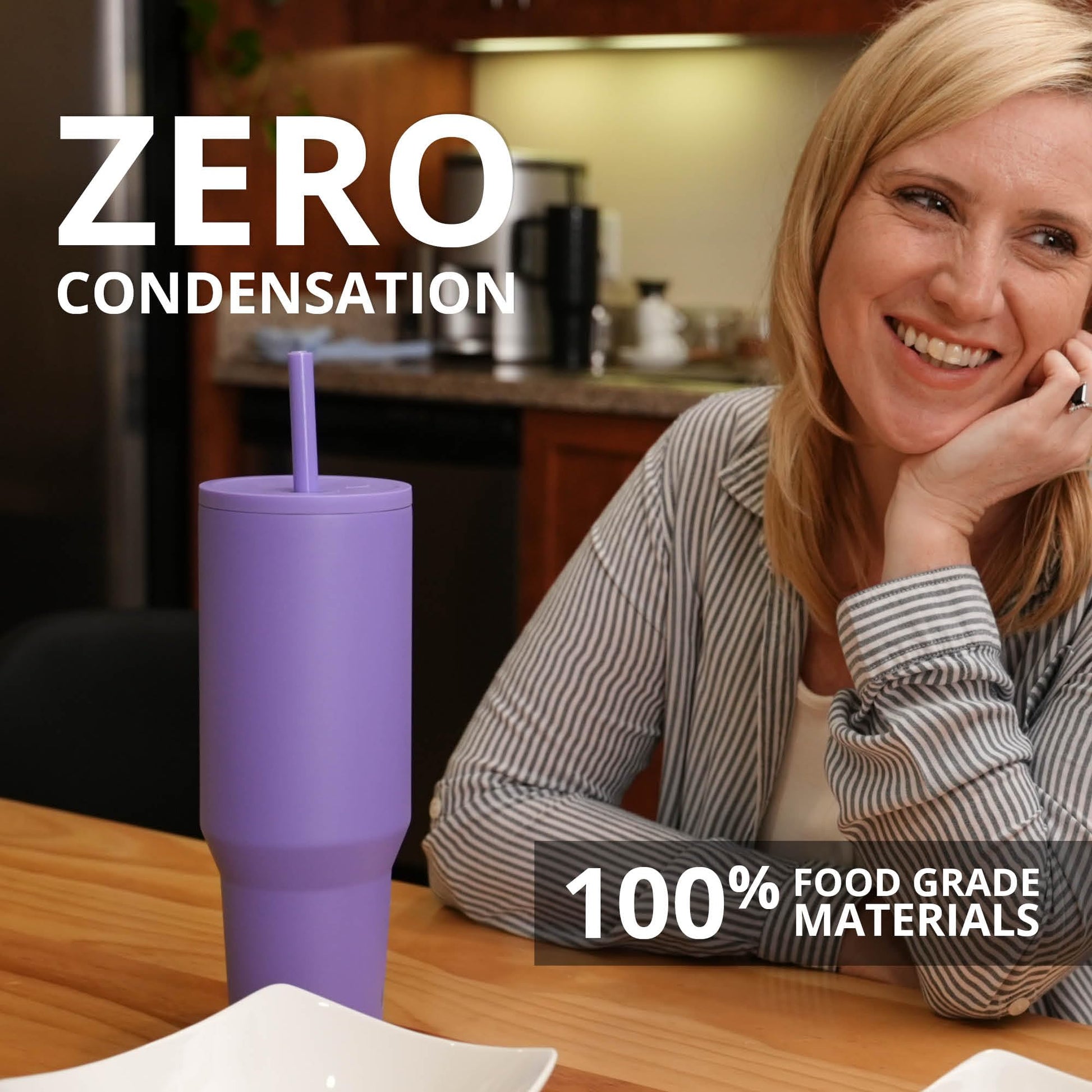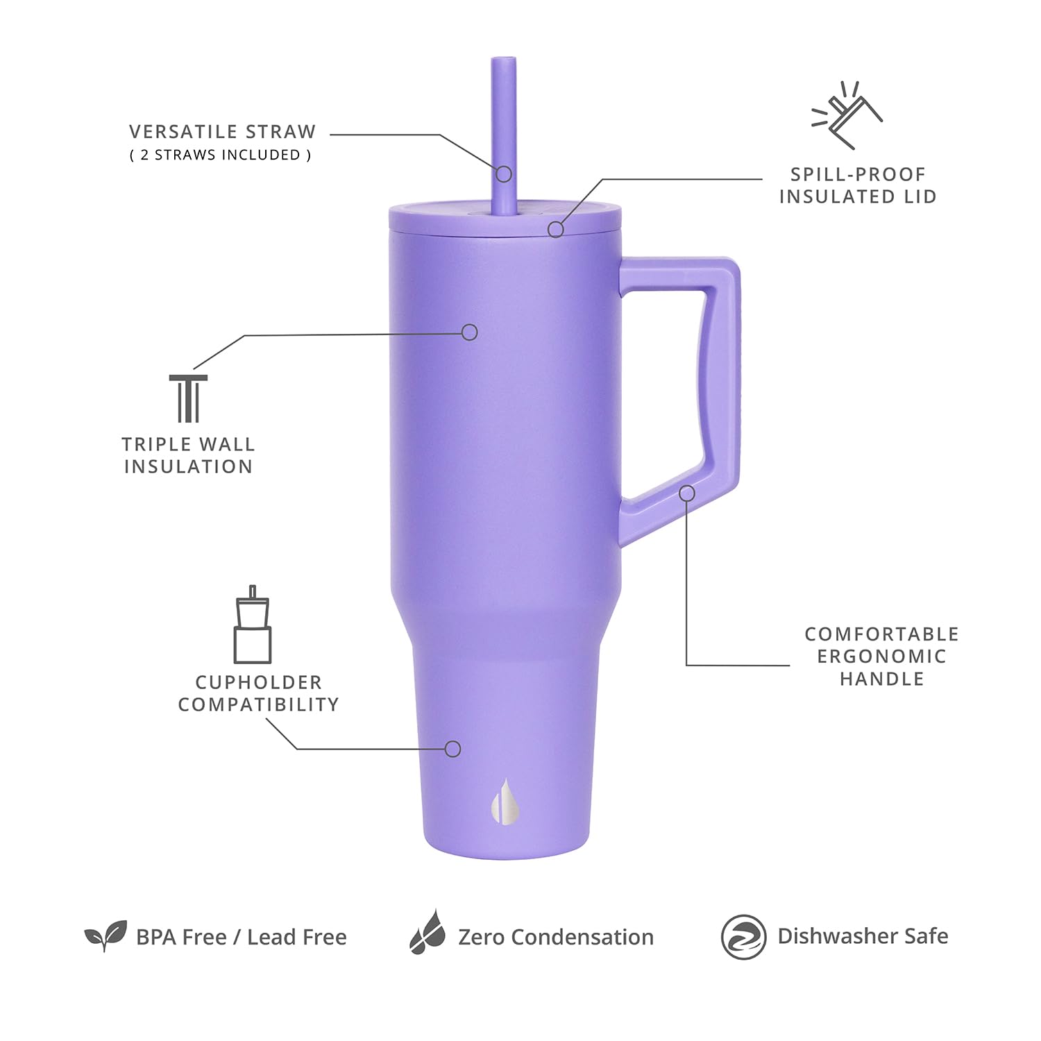 Elemental 40 oz Tumbler with Handle and Straw - Spill Proof Insulated Stainless Steel Commuter for Hot and Cold Beverages - Travel Coffee Mug with 2 Straws & Spill Proof Lid - 40oz - Lavender