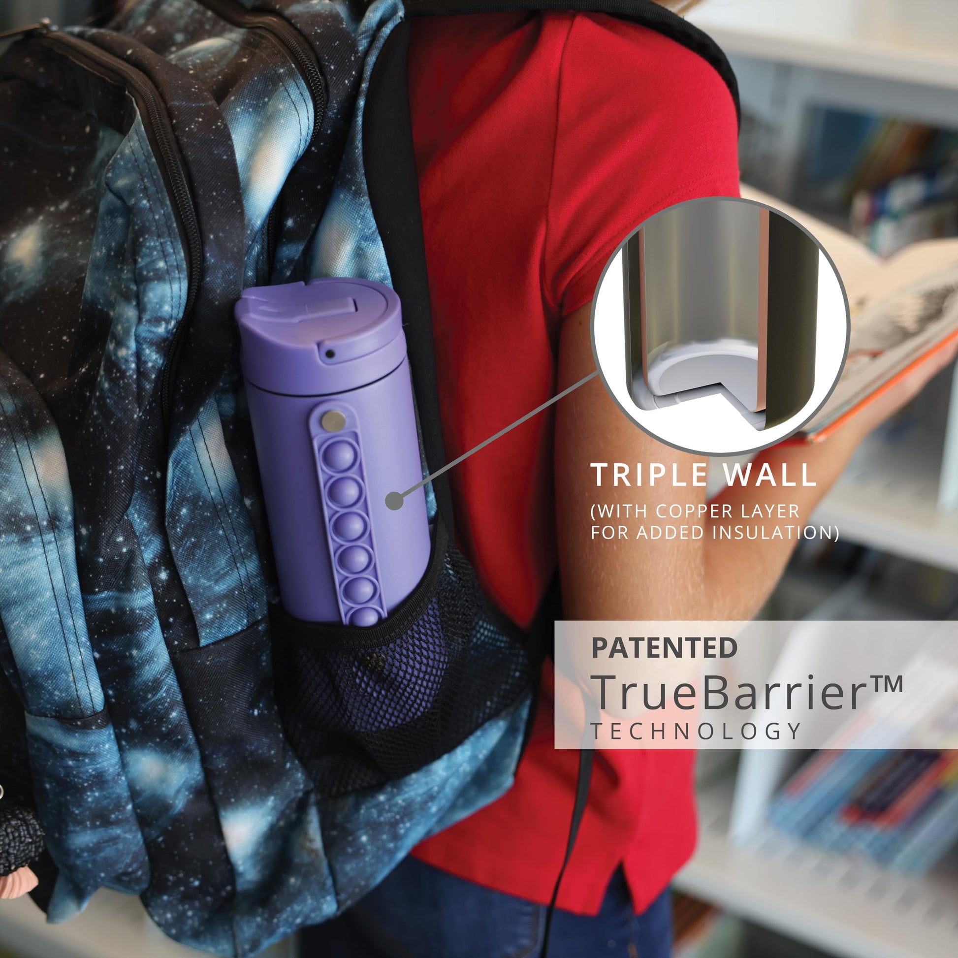 Elemental Iconic Kids Water Bottle with Straw Lid & Stress Relief Pop It Handle, Leak-Proof When Closed, Triple Insulated Kids Stainless Steel Water Bottle For Girls and Boys, 14oz - Lavender