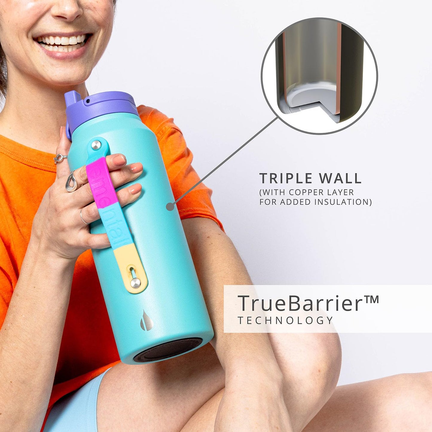 - š£šæš¼šš¶š±š²š š® šš¼šŗš³š¼šæšš®šÆš¹š² ššæš¶š½: Our insulated water bottle with handle has a powder-coat finish and adjustable strap so you can hold it firmly. The adjustable strap makes it easy to attach to your bag.