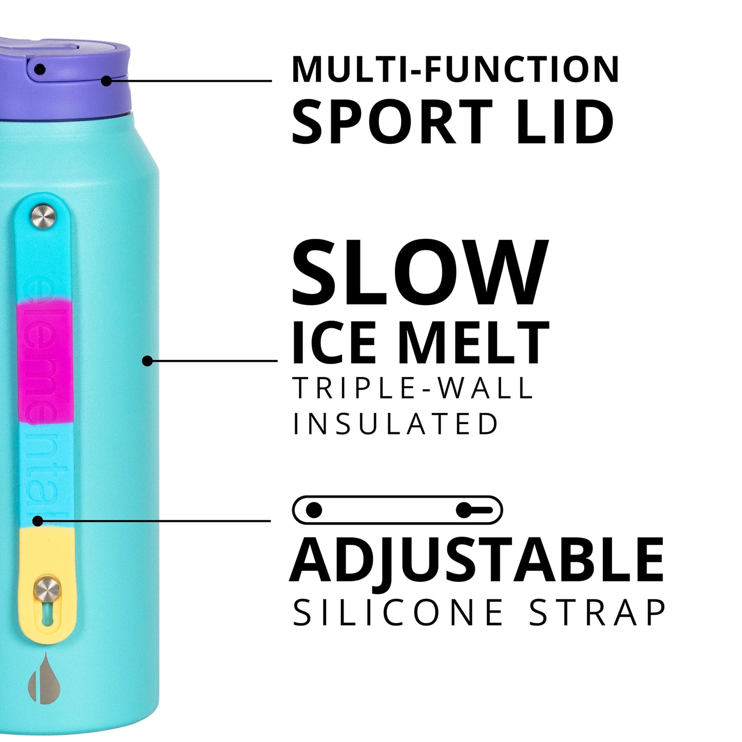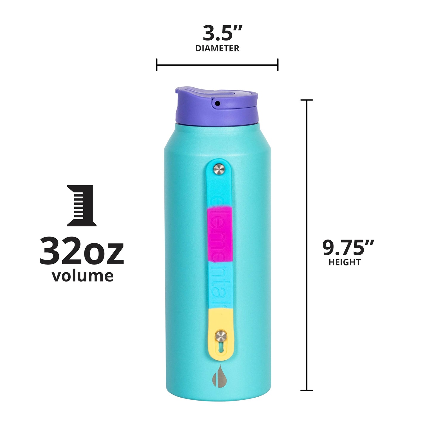 Elemental Iconic Stainless Steel Water Bottle with Straw - 32 oz Leak Proof Triple Wall Insulated Water Bottles for Travel and Sports - Reusable Gym Water Bottle with 2 Straws - Blue Tie Dye