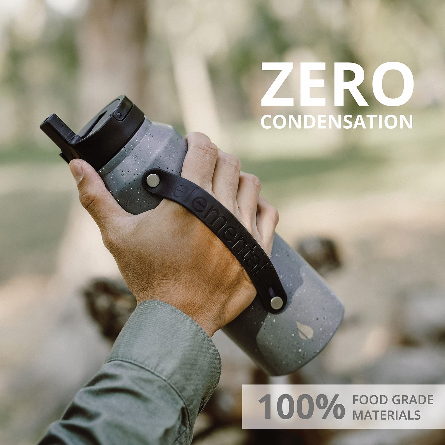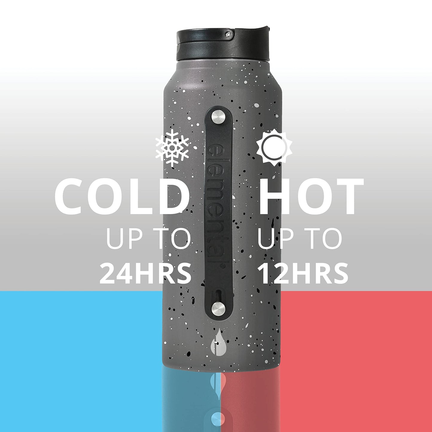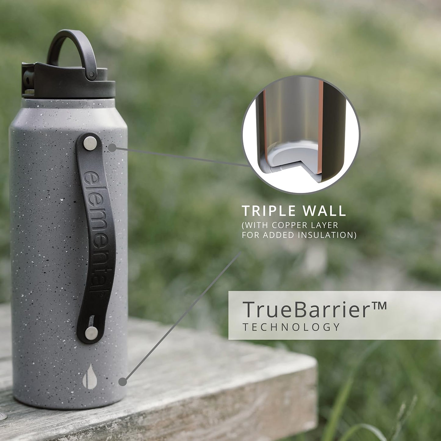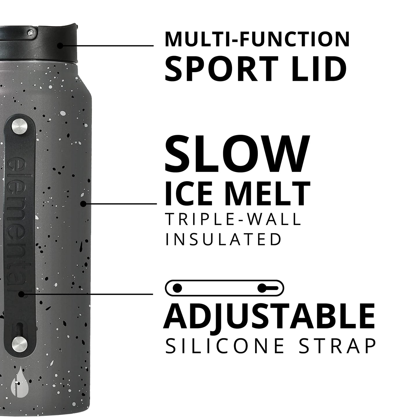 Elemental Iconic Stainless Steel Water Bottle with Straw - 32 oz Leak Proof Triple Wall Insulated Water Bottles for Travel and Sports - Reusable Gym Water Bottle with 2 Straws - Grey Speckle