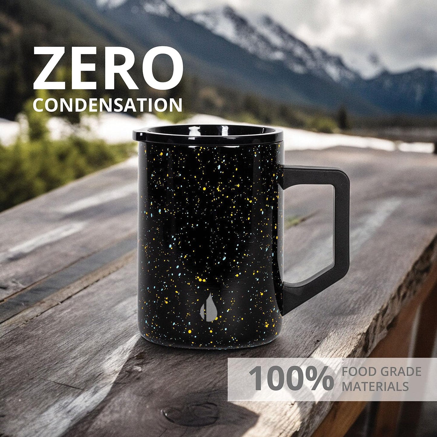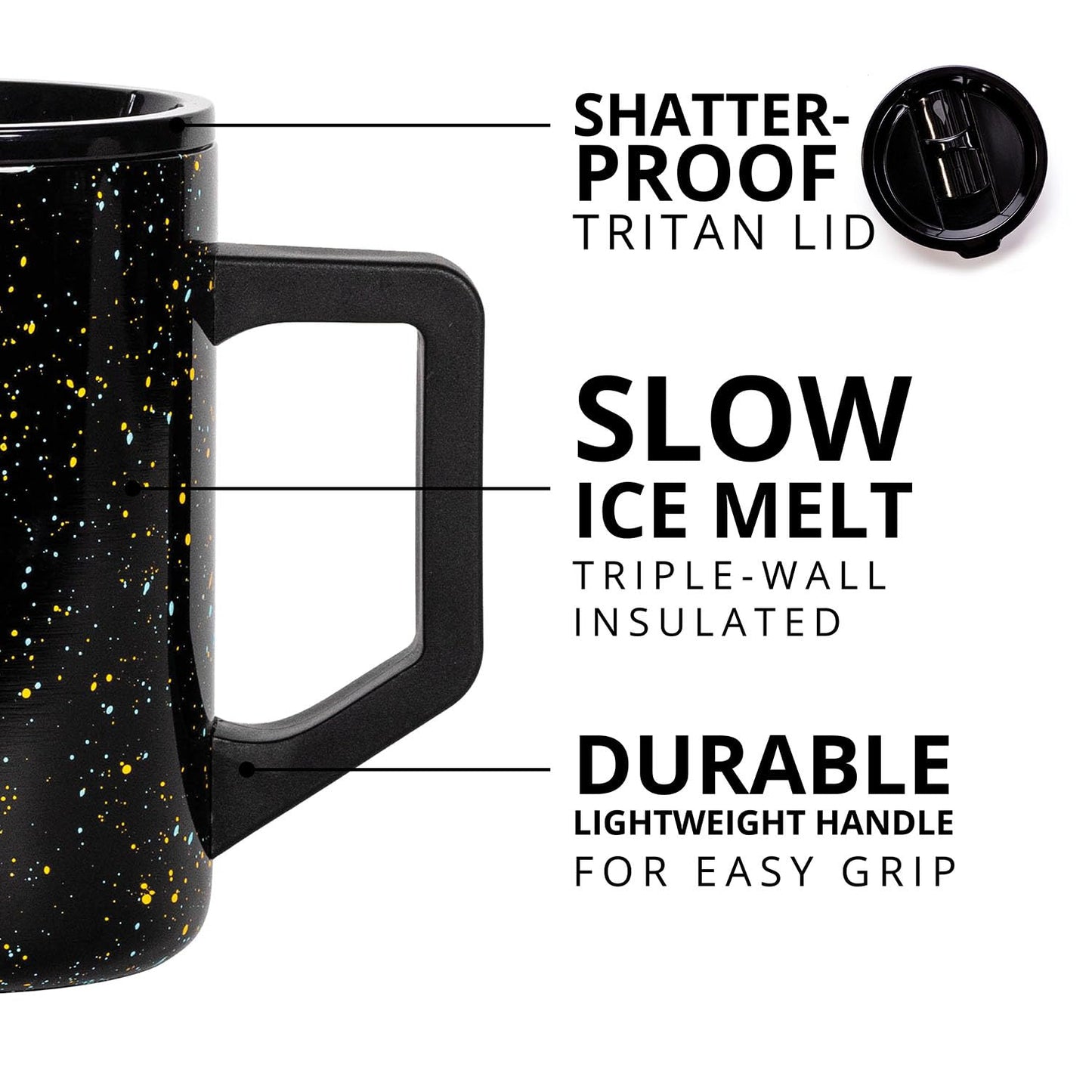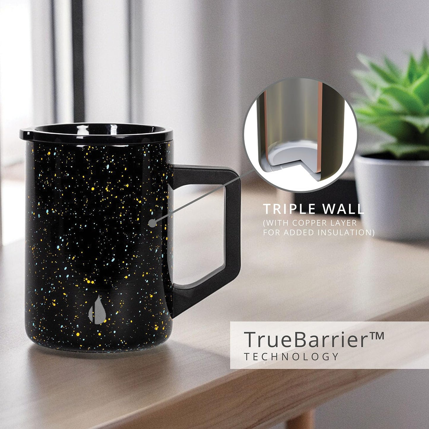 Elemental Insulated Coffee Mug - Triple-Wall Stainless Steel Summit Travel Cup for Hot and Cold Drinks - Thermal Coffee Mug with Lid and Handle for Camping, Office & Travel 16oz - Black Speckle