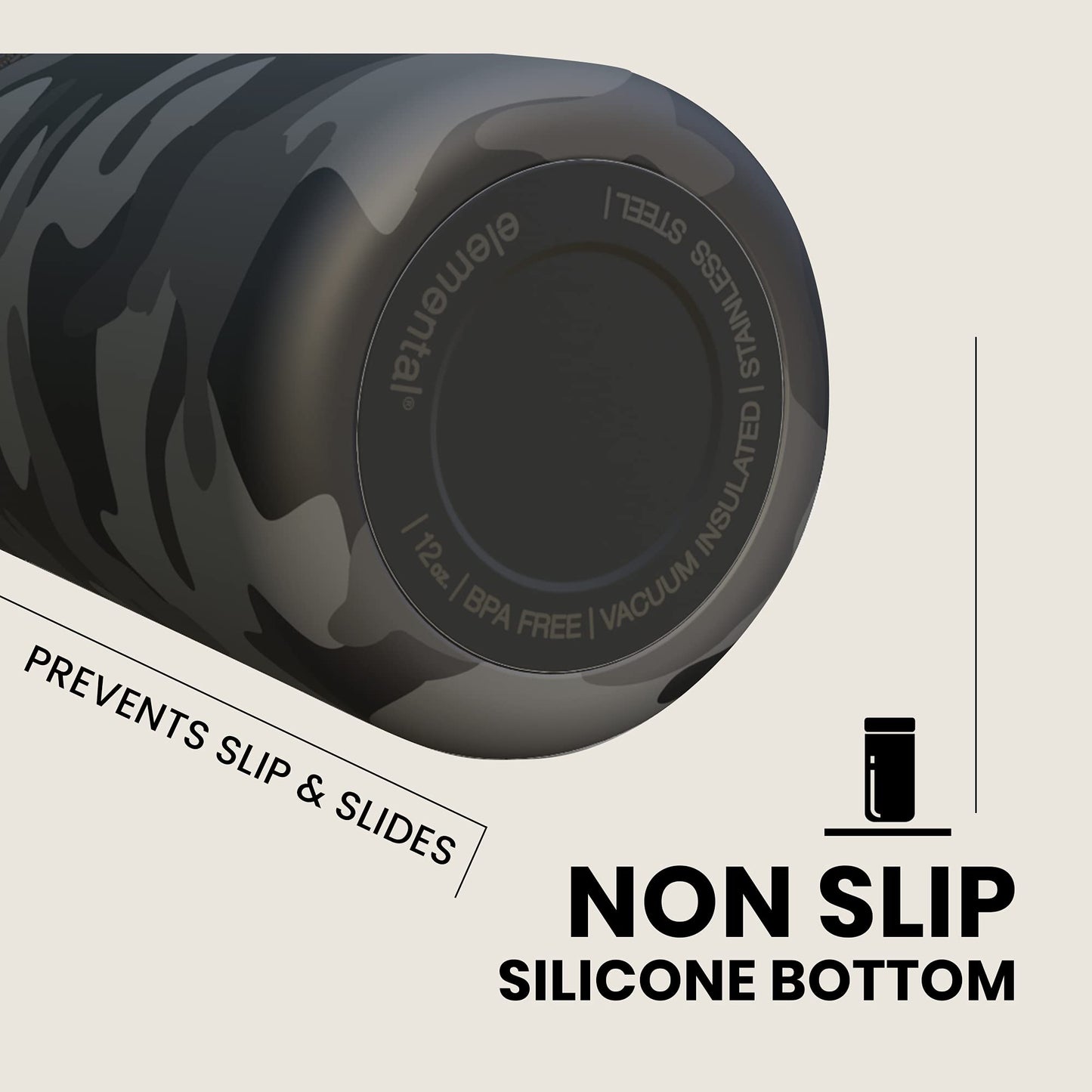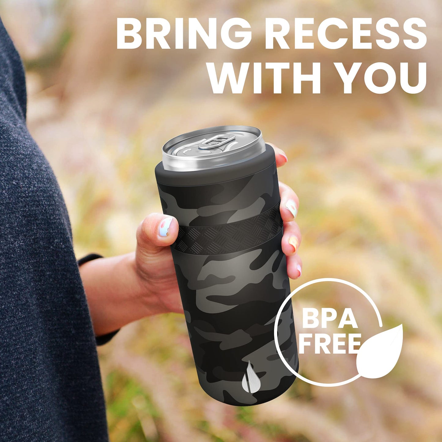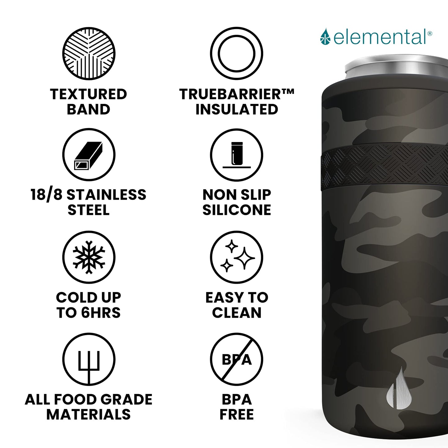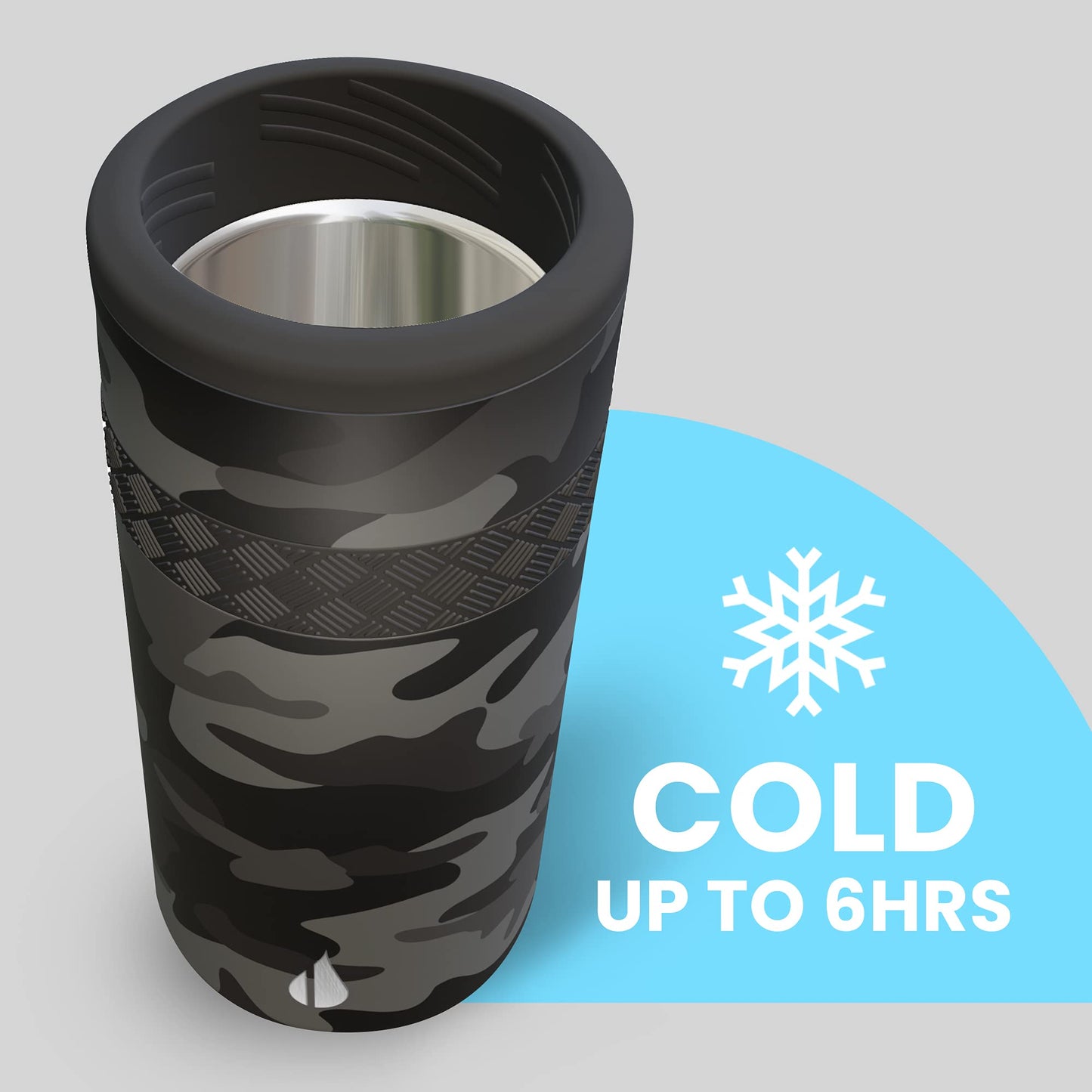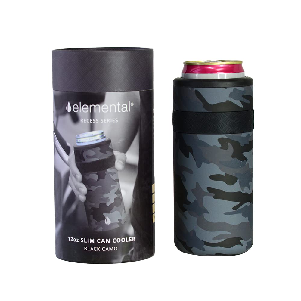 Elemental Insulated Slim Can Cooler, Triple Wall Stainless Steel Skinny Can Cooler - Drink Cooler Insulator for 12oz Skinny Seltzers, Beer, Soda Cans - Black Camo