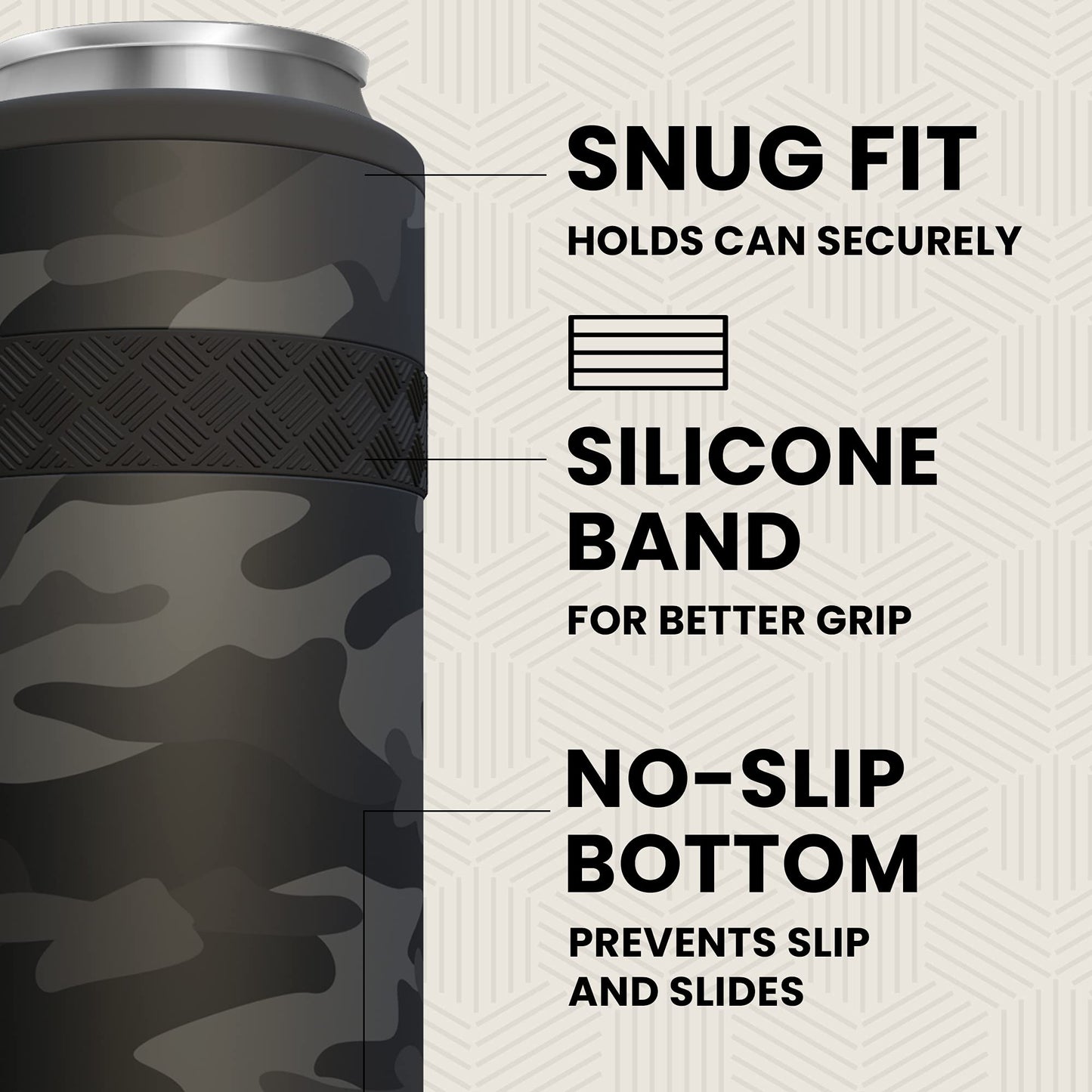 - Silicone Band for Comfortable Grip - Our stainless steel can cooler has 3 grip surfaces for total control over accidental slips and spills. Its design also allows a firm grip and keeps your hands warm and dry from condensation.