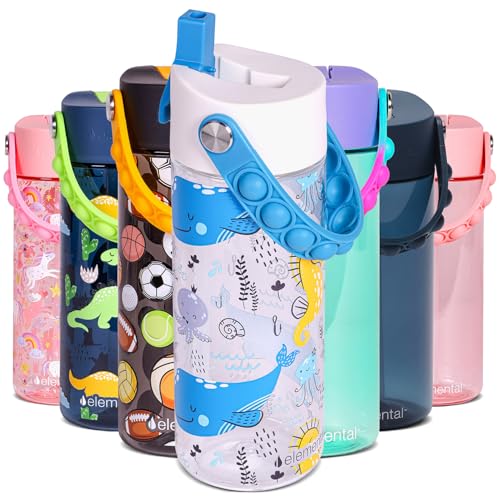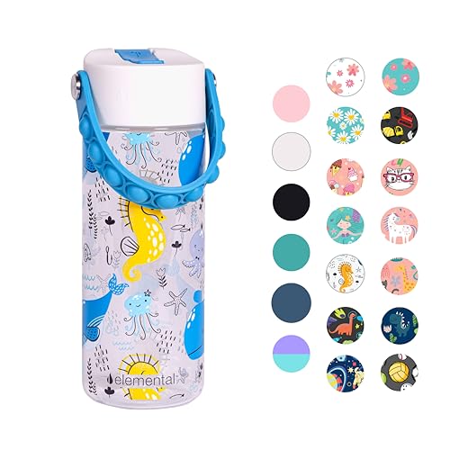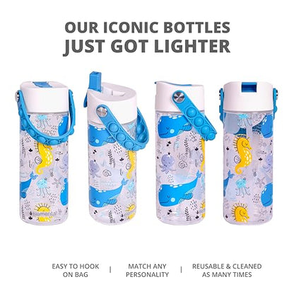 Elemental Leak Proof Water Bottles for Kids - Splash Kids Water Bottle for School with Pop-it Handle - BPA Free Tritan Plastic Reusable Water Bottle with Straw - Ocean Friends - 18oz