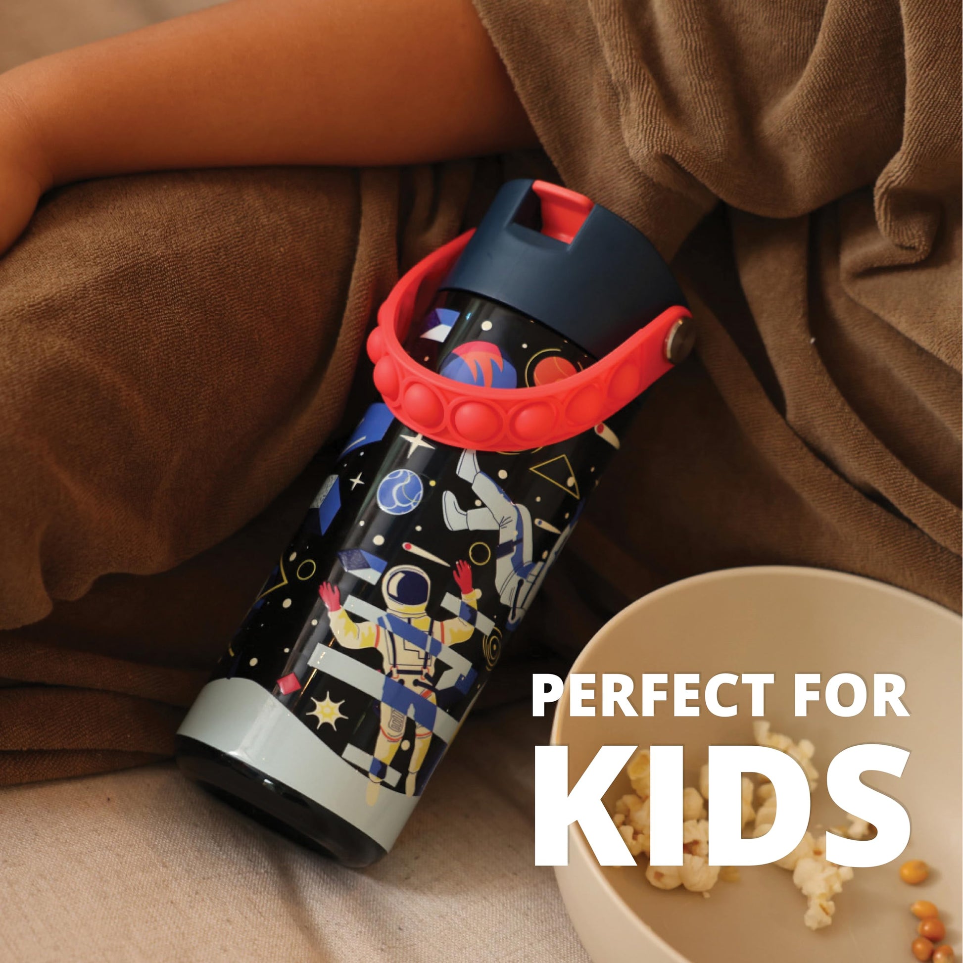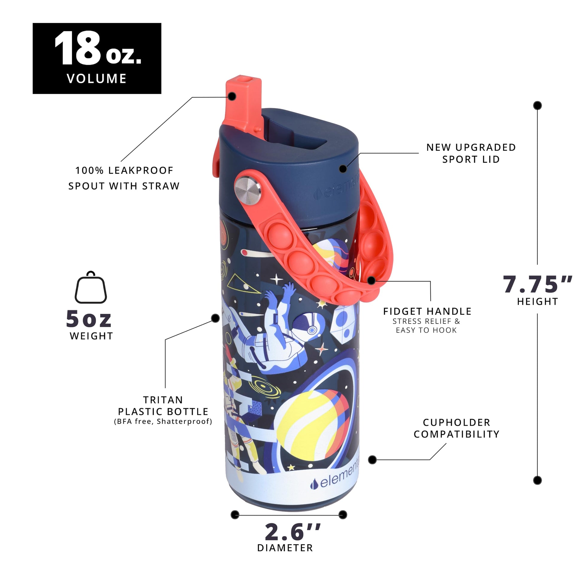 Elemental Leak Proof Water Bottles for Kids - Splash Kids Water Bottle for School with Pop-it Handle - BPA Free Tritan Plastic Reusable Water Bottle with Straw - Space - 18oz