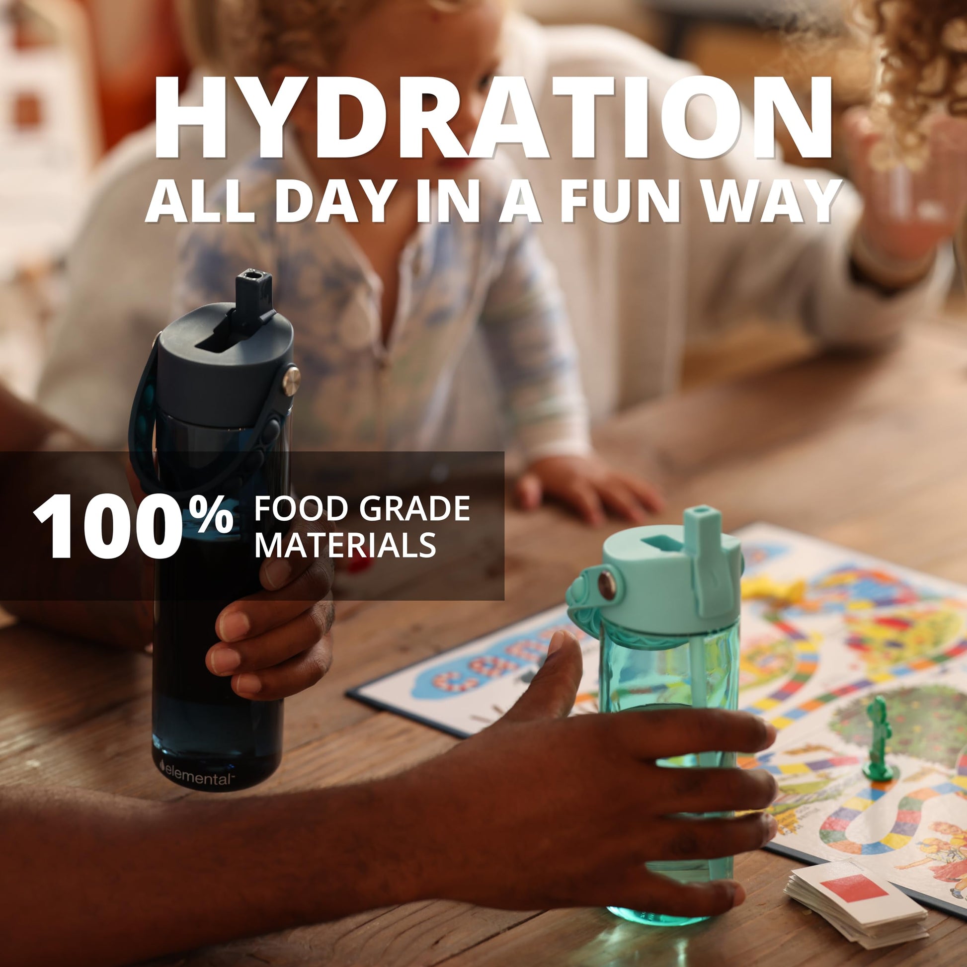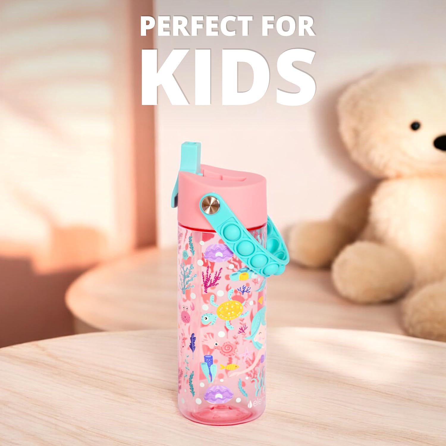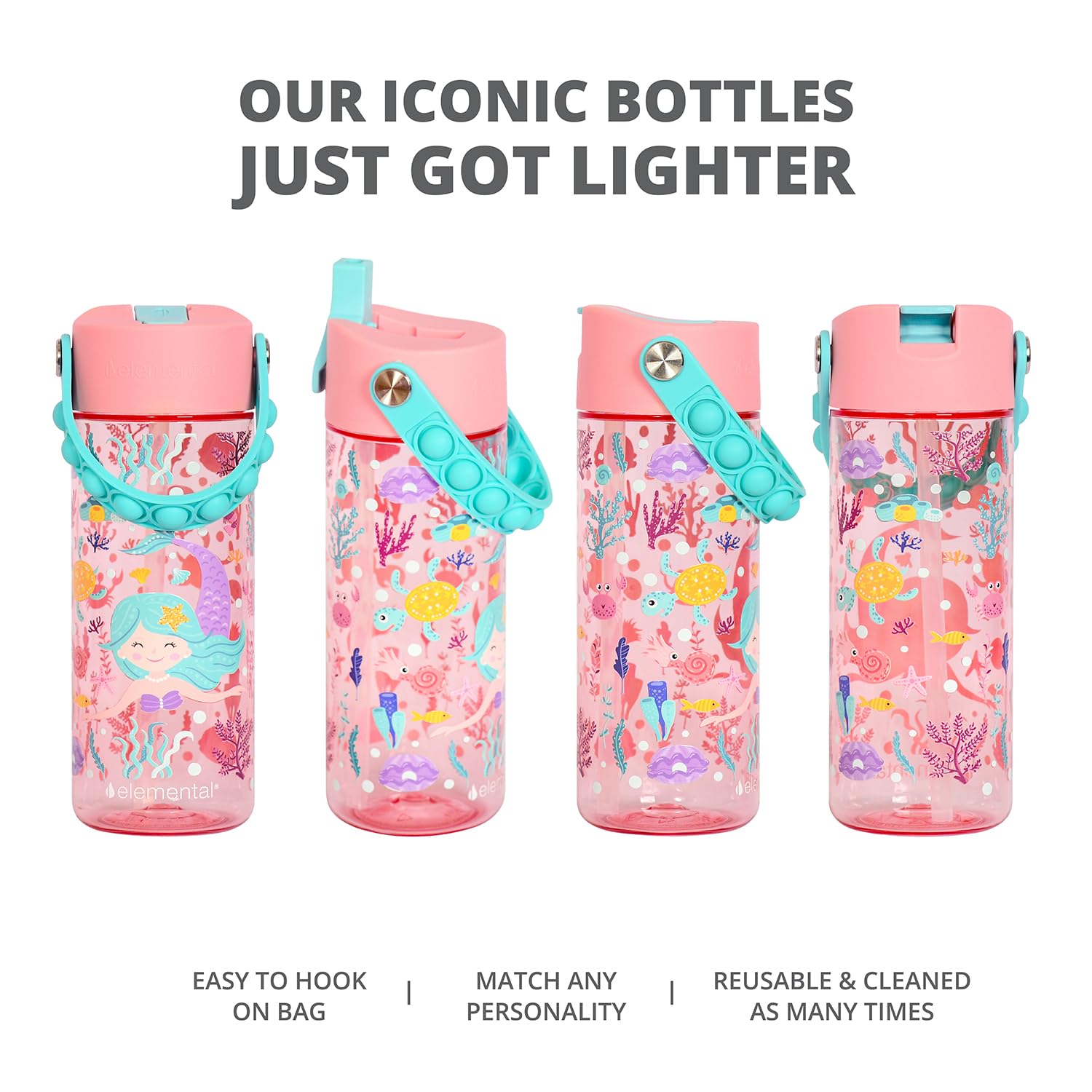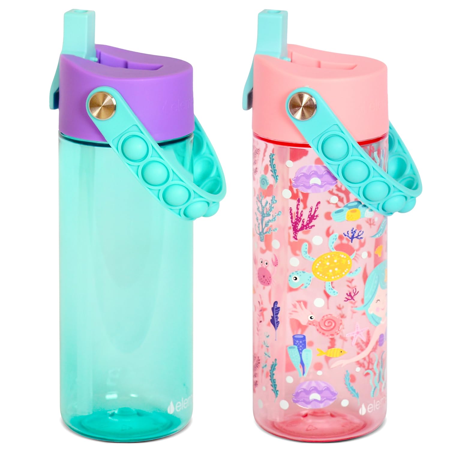 Elemental Leak Proof Water Bottles for Kids - Splash Kids Water Bottle for School with Pop-it Handle - Tritan Plastic Water Bottle with Straw - Mermaid & Robin's Egg - 18oz (2 Pack)