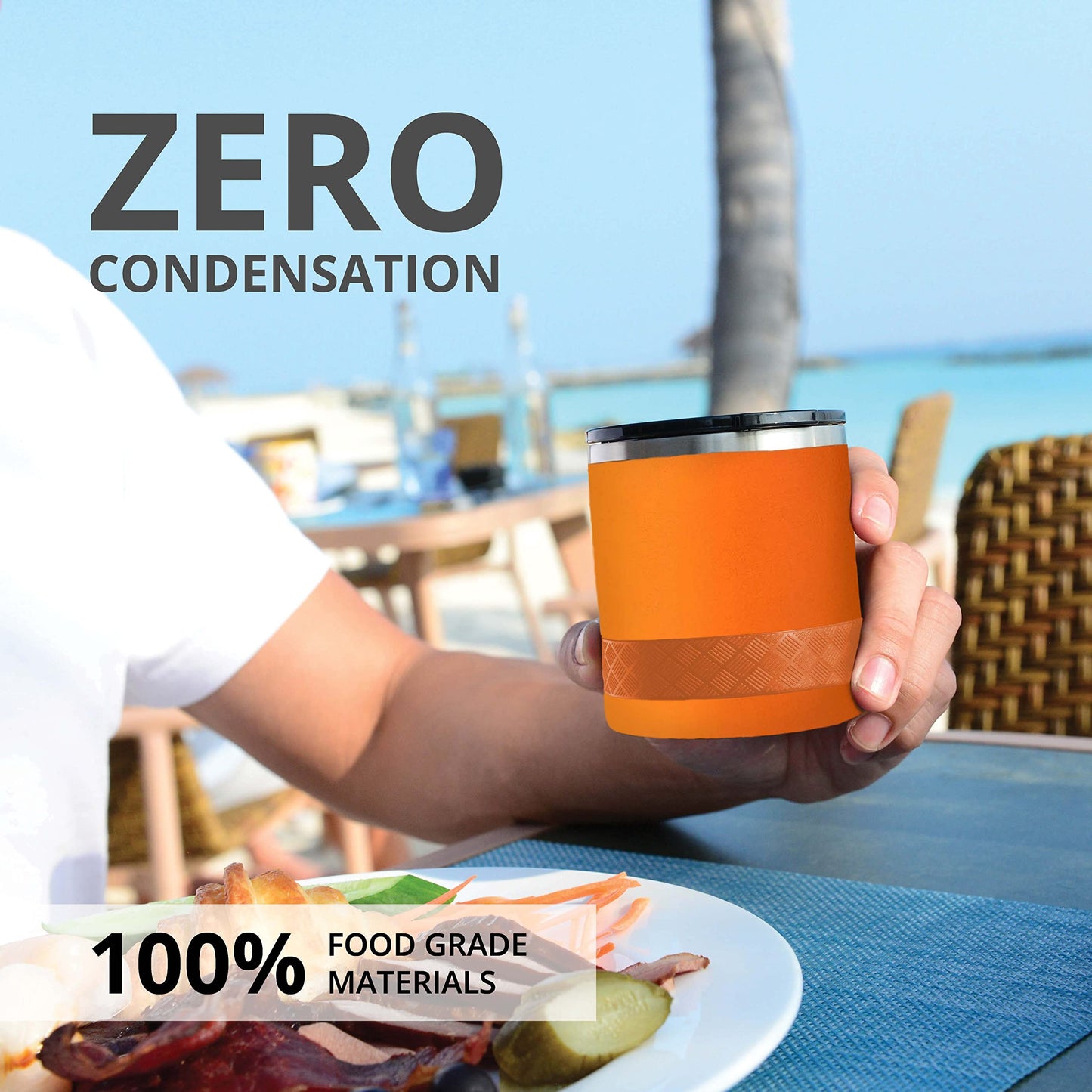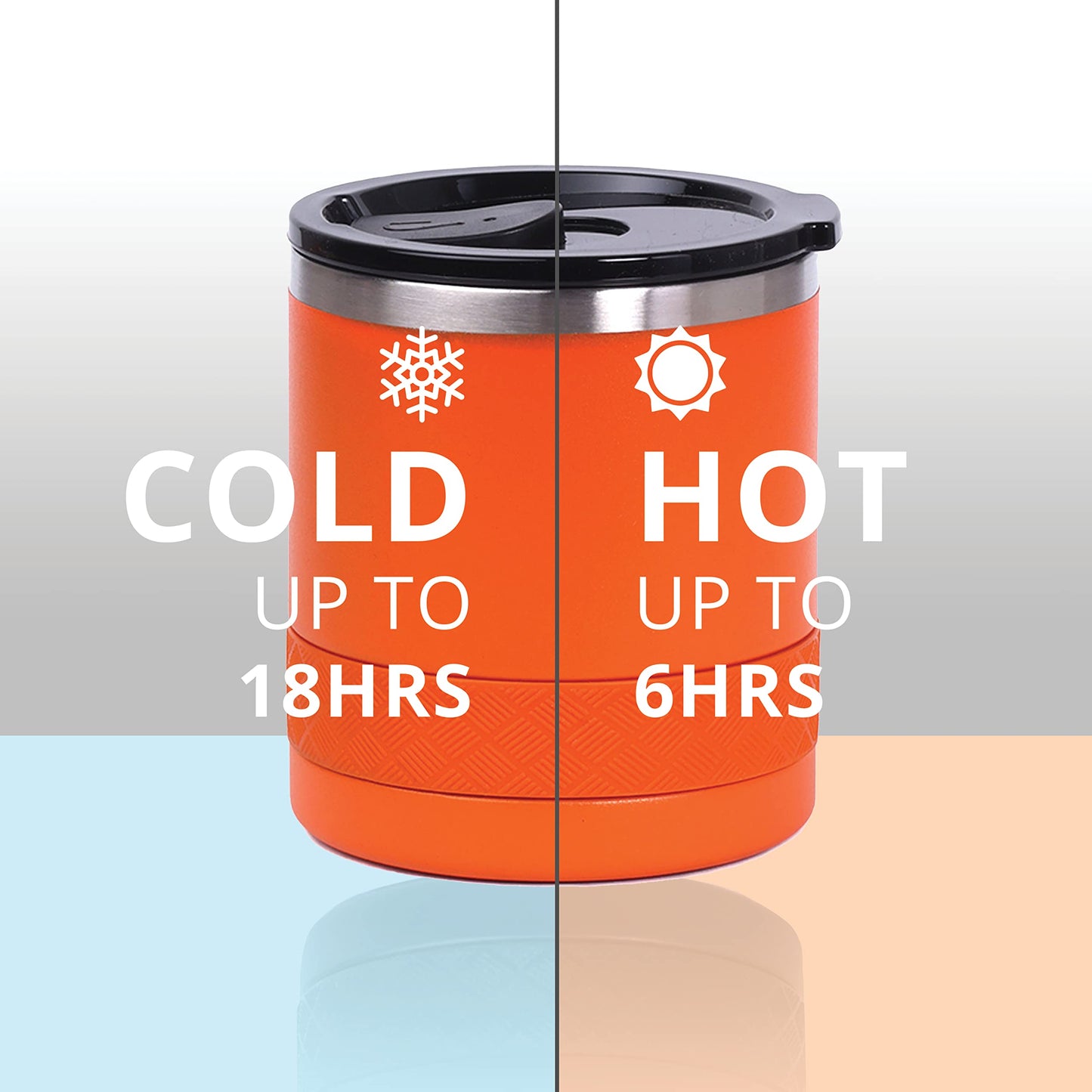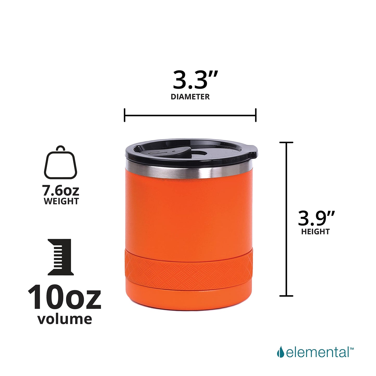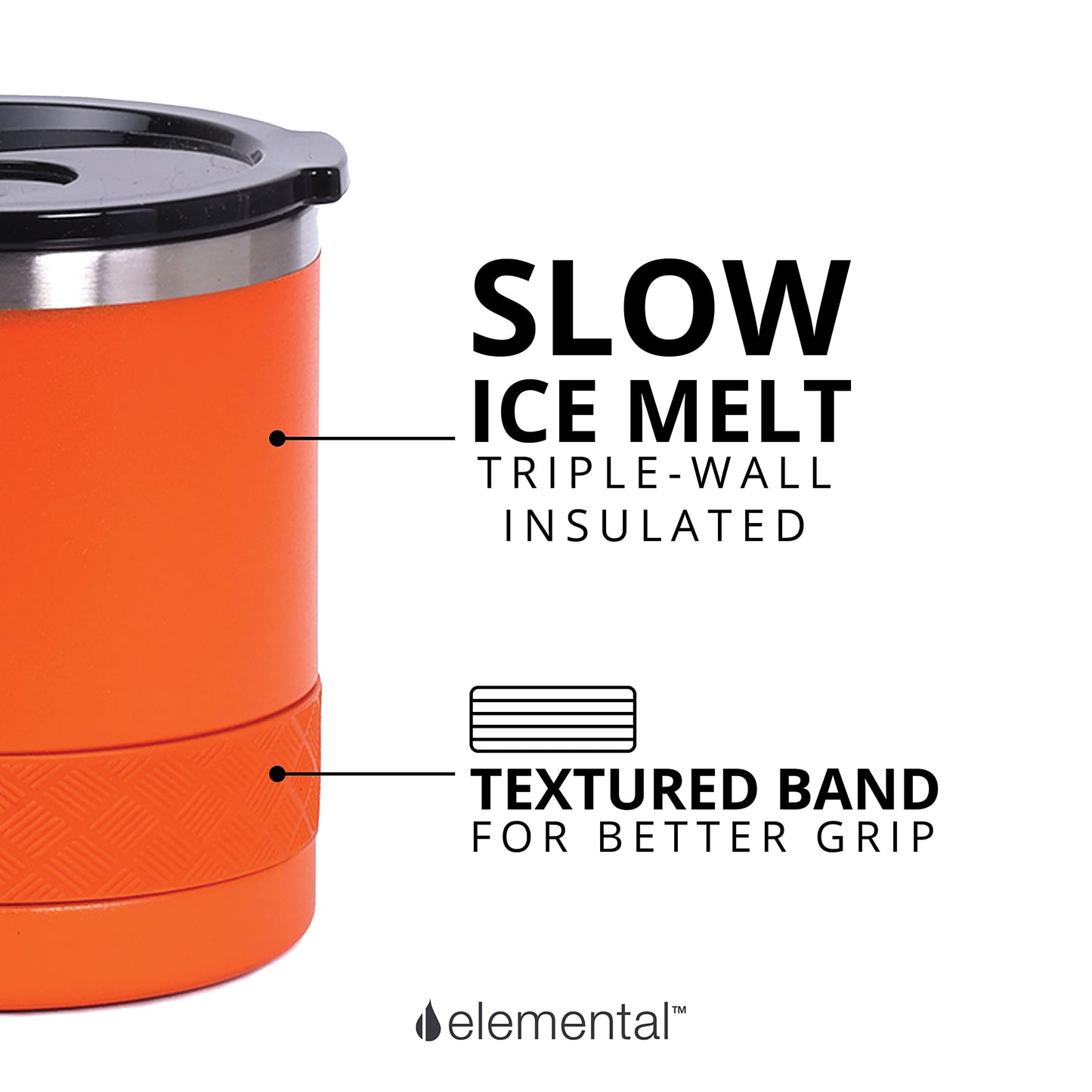 Elemental Recess Lowball Tumbler, 10oz Triple Wall Stainless Steel Cup with Non-Shattered Tritan Lid, Insulated Whiskey Glass, Insulated Coffee Tumbler Mug for Hot & Cold Drinks - Orange