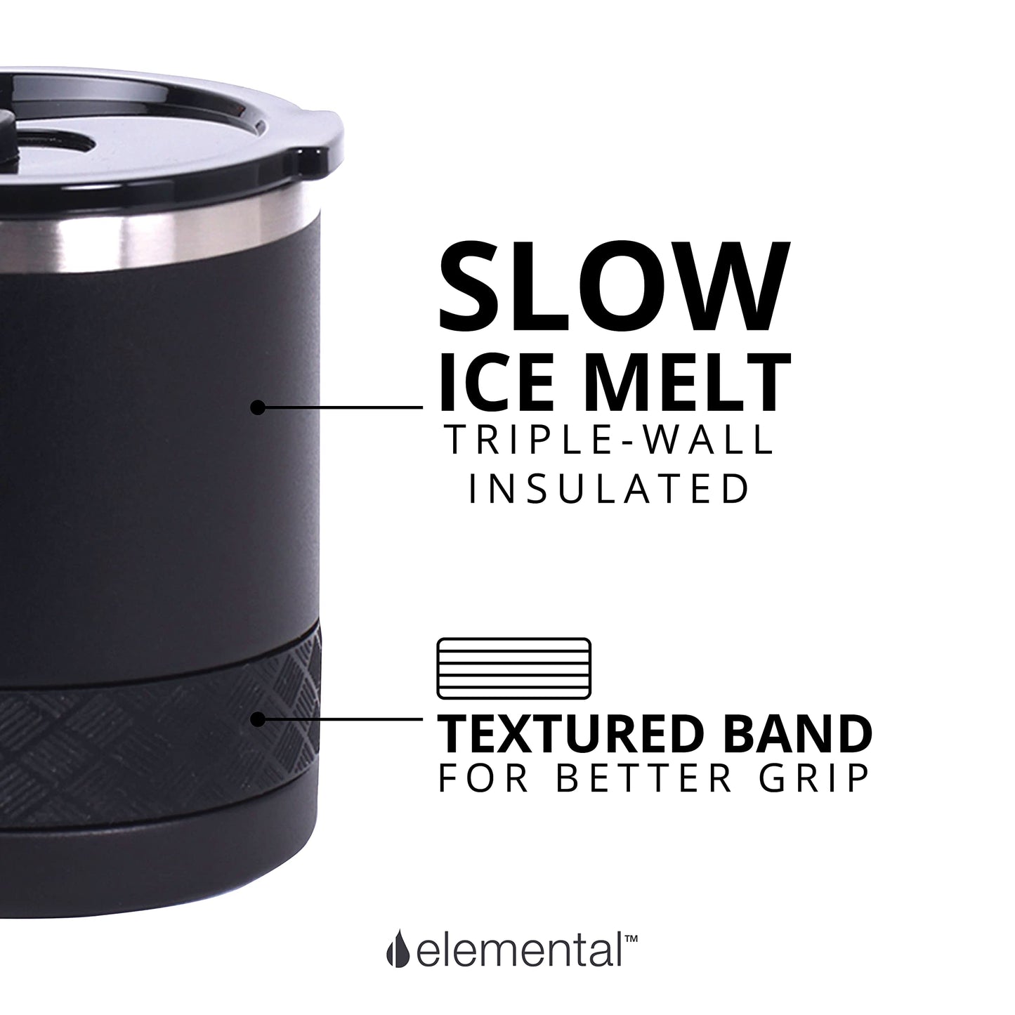 - ๐๐ผ๐บ๐ณ๐ผ๐ฟ๐๐ฎ๐ฏ๐น๐ฒ ๐๐ผ๐น๐ฑ: The Elemental small size tumbler features Elemental's signature silicone grip that helps you hold it comfortably. It also comes standard with a Tritan lid, which helps prevent shattering on your daily commute and also perfect for your next camping trip.