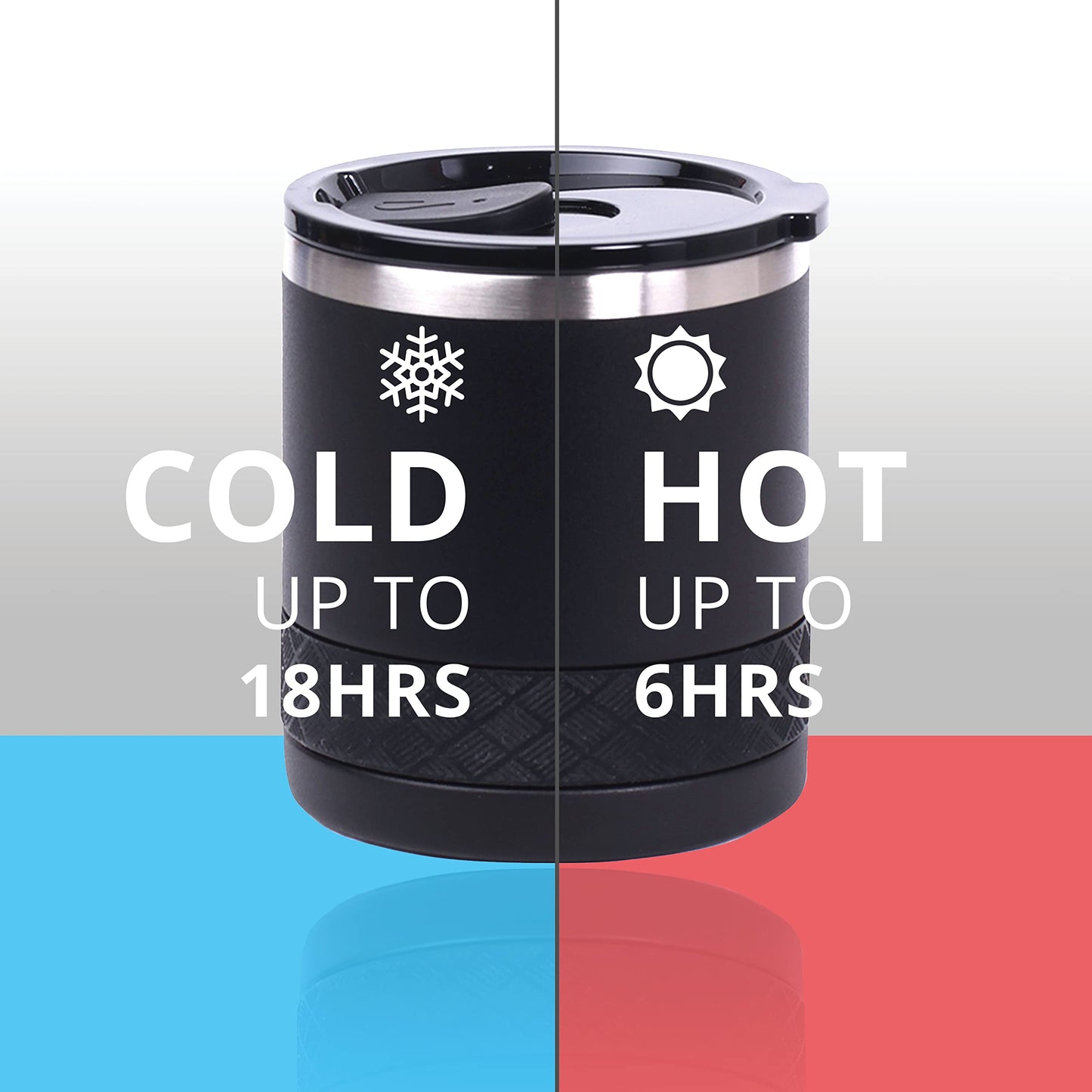 Elemental Recess Lowball Tumbler Set of 2, 10oz Triple Wall Stainless Steel Cup with Non-Shattered Tritan Lid, Insulated Whiskey Glass, Insulated Coffee Tumbler Mug for Hot & Cold Drinks - Black