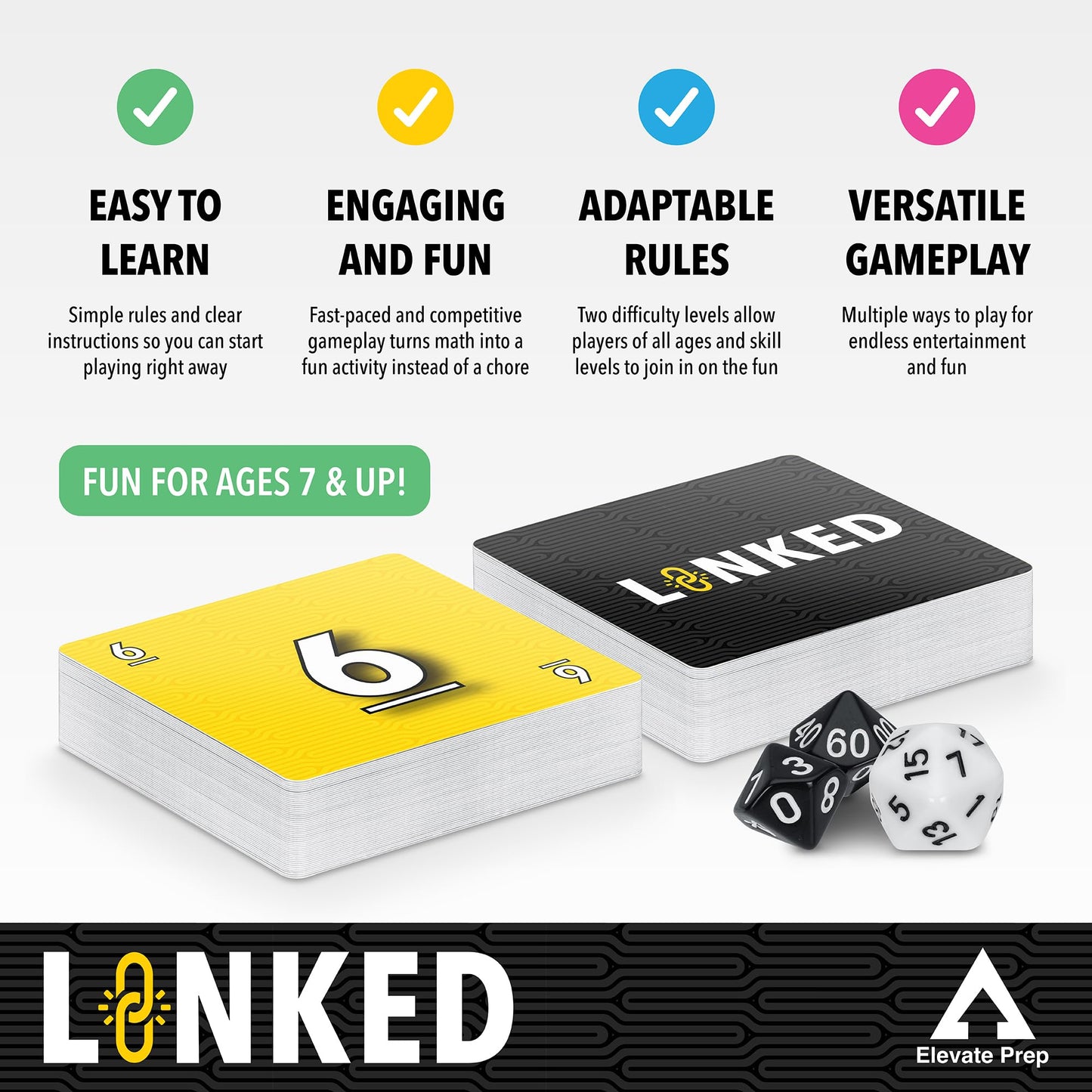 Elevate Prep Linked Math Game | The Game of Quick Thinking and Number Linking | Fun and Engaging Math Game for Kids Ages 7+ | Addition, Subtraction, Multiplication, and Division Game