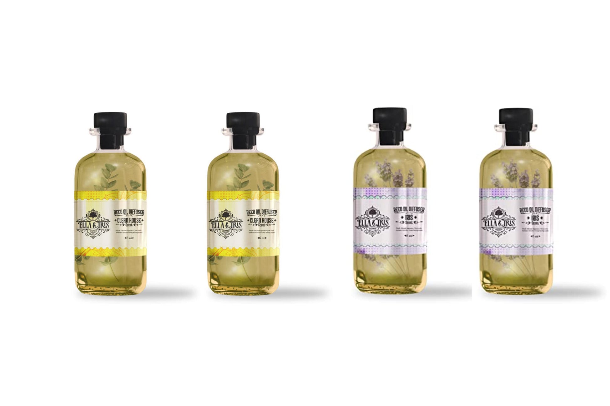 Ella & Iris Home Iris and Clean House Fragrance Reed Diffuser Bundle - Long Lasting Relaxing for Home & Room Fragrance - Aromatherapy Benefits & Non-Toxic - Home & Office Decor Gift (6oz)