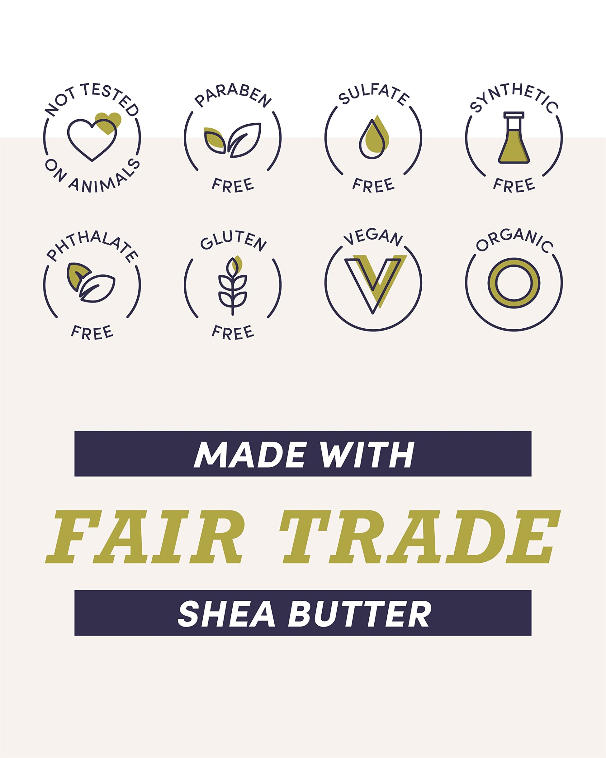 - Finest Ingredients: We use only the highest quality natural, raw ingredients for soft, hydrated skin and hair. Key ingredient: Butyrospermum Parkii (Shea) Butter.