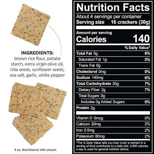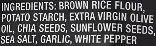 - Whole Food Ingredients: Made from brown rice flour, potato starch, extra virgin olive oil, chia seeds, sunflower seeds, sea salt, garlic, and white pepper; Vegan and kosher