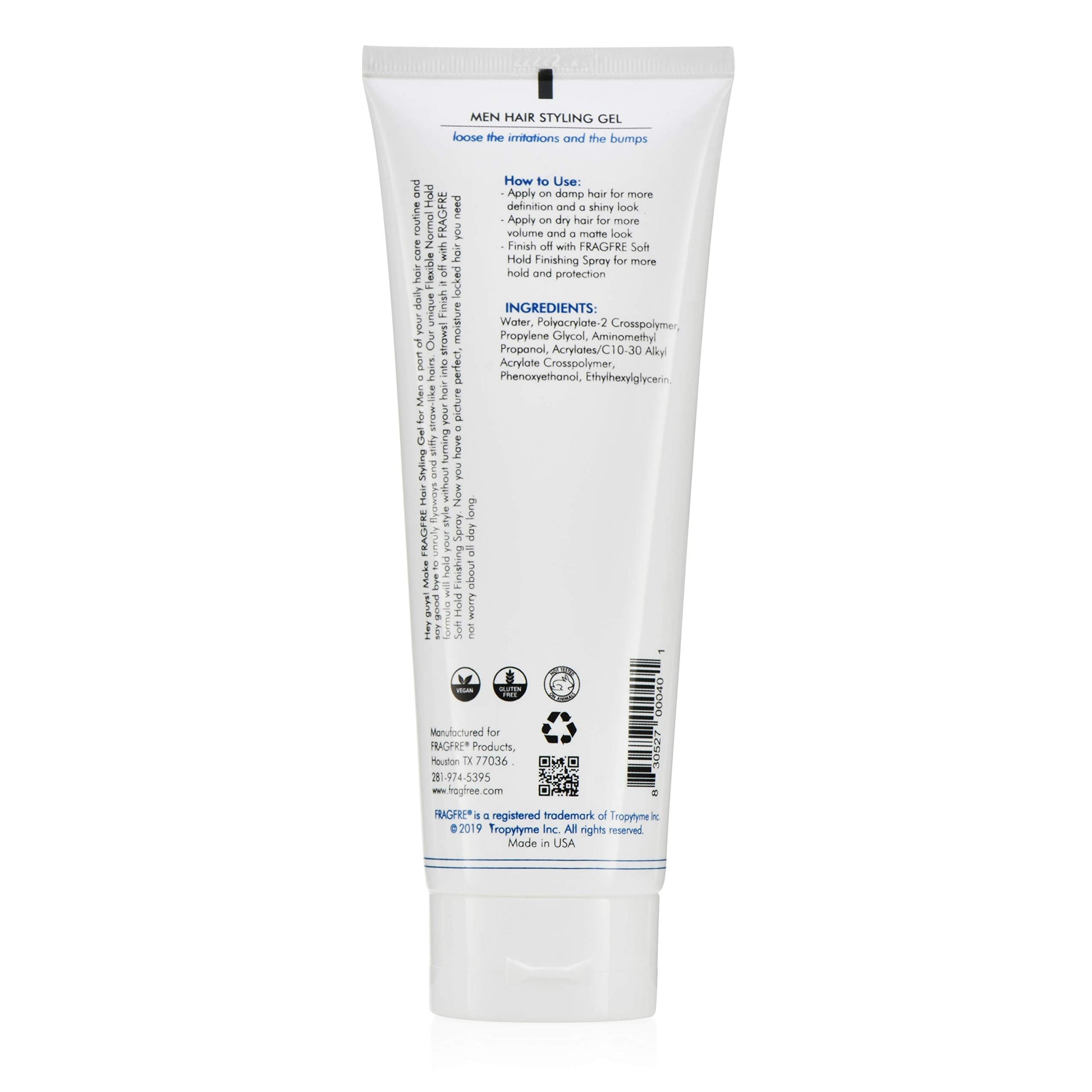 FRAGFRE Men Hair Styling Gel Fragrance Free 8 oz - pH Balanced for Men with Sensitive Skins - Not Too Firm or Too Light - Just Normal Hold for Normal Hair Styles - Hypoallergenic (Bumps Be Gone!)