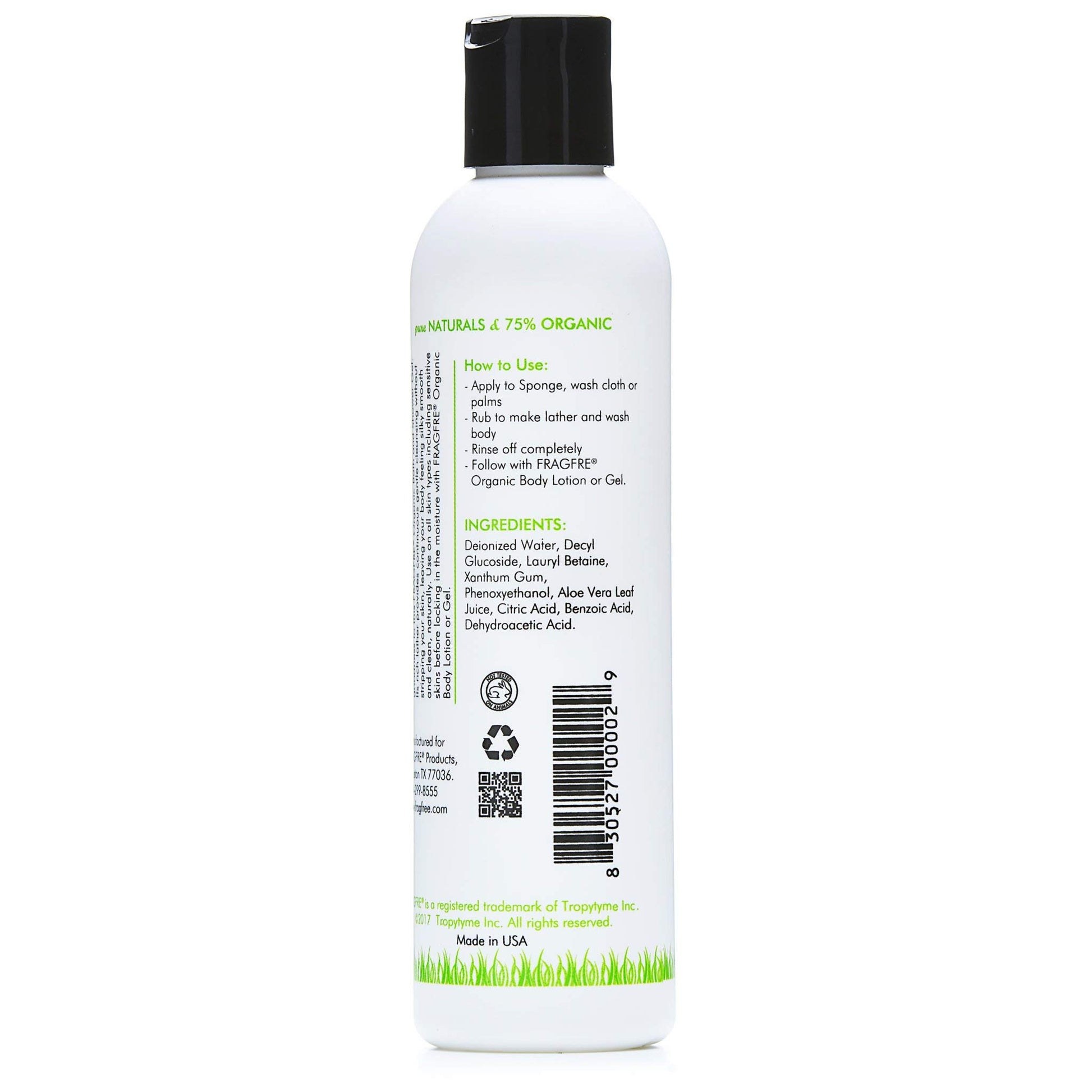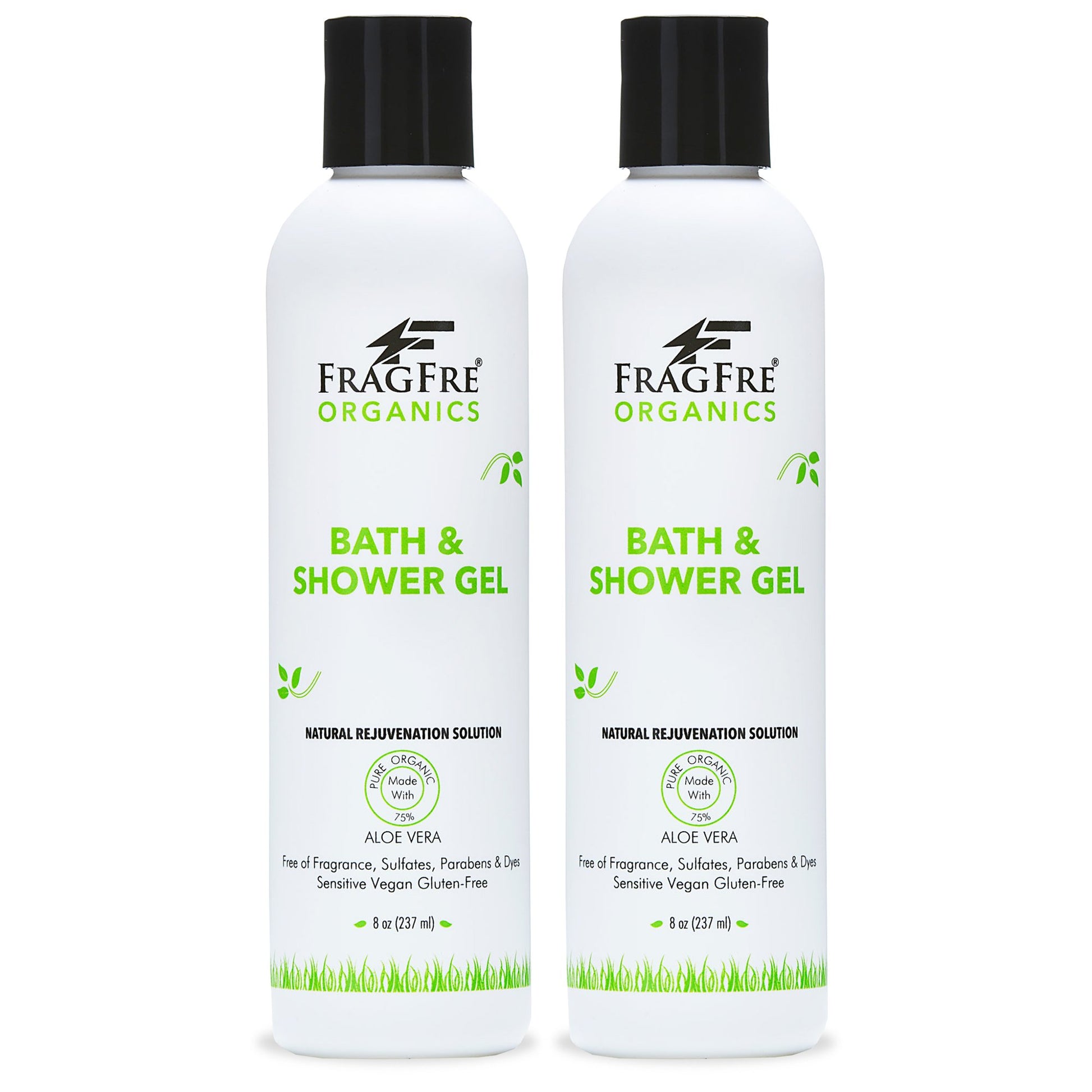 FRAGFRE Organic Shower Gel 2/Pack - Fragrance Free Sulfate Free Parabens Free - for Itchy Dry Sensitive Skins - 8 oz - Gluten Free Vegan Cruelty Free - Organic Aloe Vera Bath Shower Gel - pure Natural