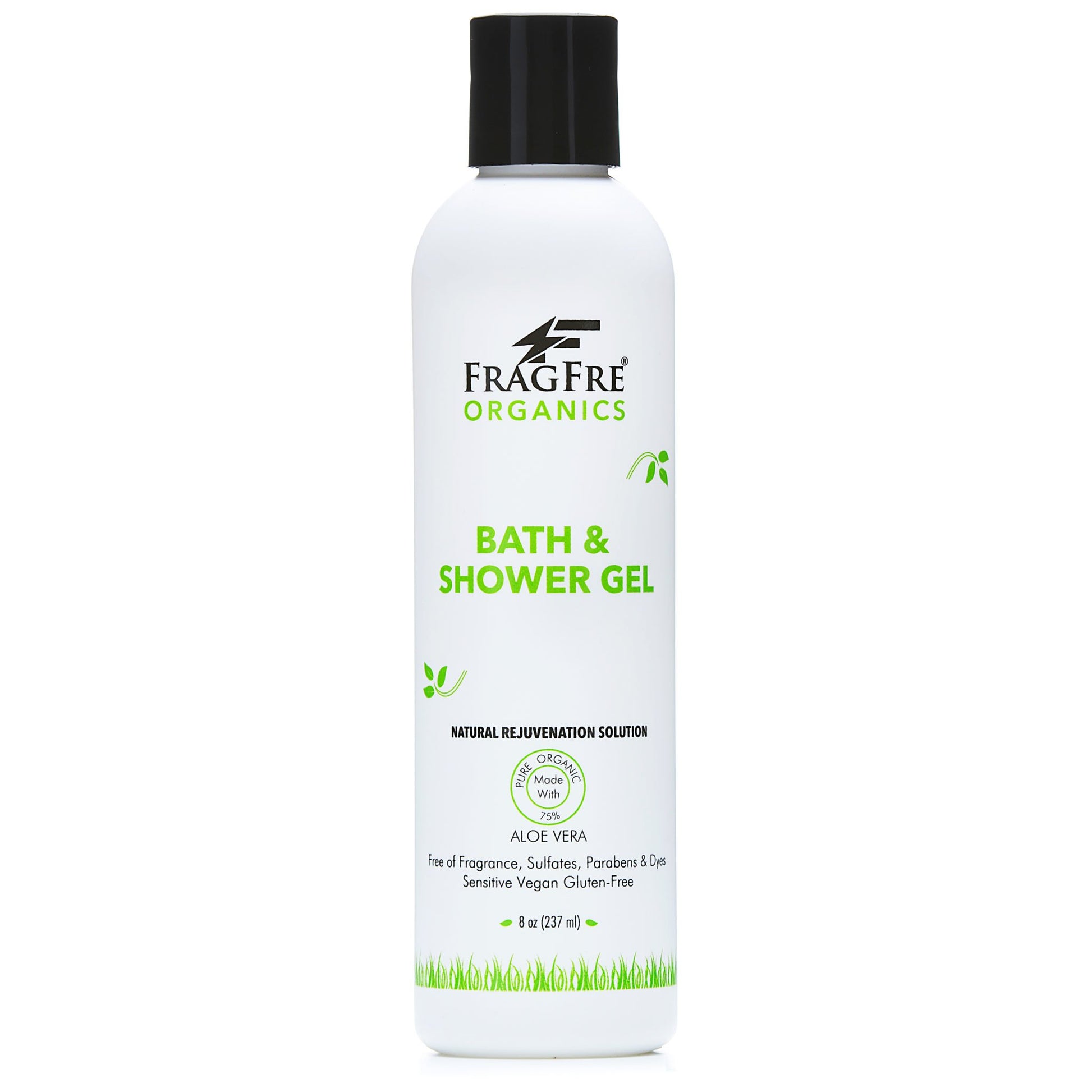 FRAGFRE Organic Shower Gel 8 oz - Fragrance Free Sulfate Free Parabens Free - for Normal and Dry Sensitive Skins - Gluten Free Vegan Cruelty Free - Organic Aloe Vera Bath Shower Gel - pure Natural