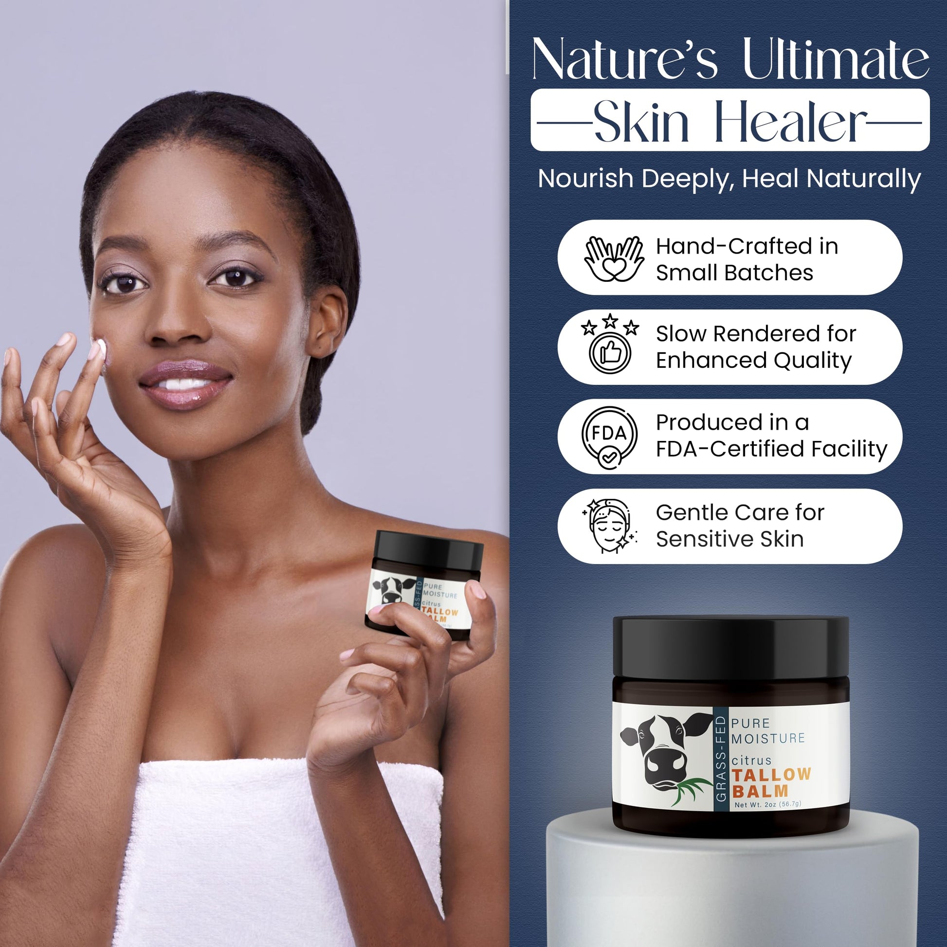 - 𝐇𝐞𝐚𝐝-𝐭𝐨-𝐓𝐨𝐞 𝐂𝐚𝐫𝐞 - Organic Beef tallow is a natural and nourishing moisturizer for dry, cracked skin, providing deep hydration and moisture. Quench your skin's thirst from head to toe with organic tallow grass fed for skin. Its quick absorption and light texture make it perfect for everyday use.