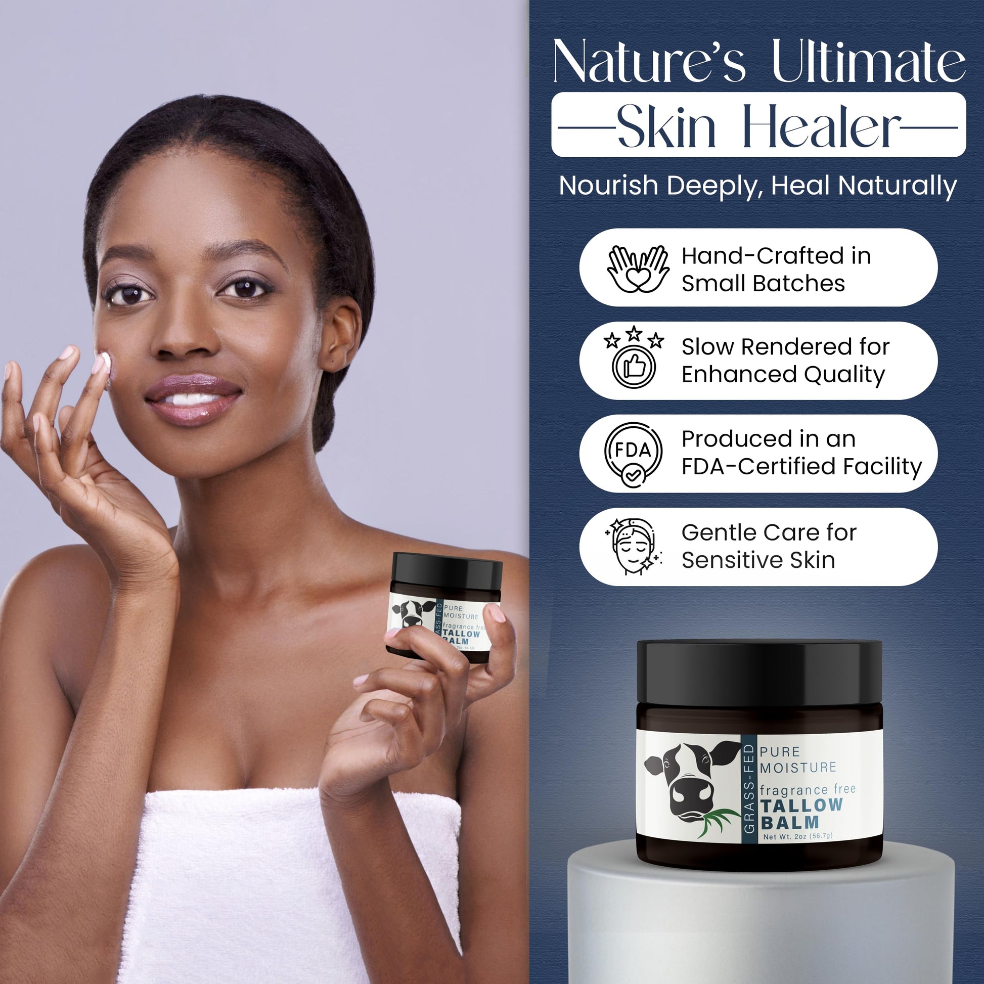 Grass Fed Beef Tallow for Skin - Tallow Face Moisturizer - Beef Tallow Balm for Face - Head to Toe Tallow Skin Care - Grass Fed Beef Tallow Moisturizer - Organic Beef Tallow for Face (Fragrance Free)