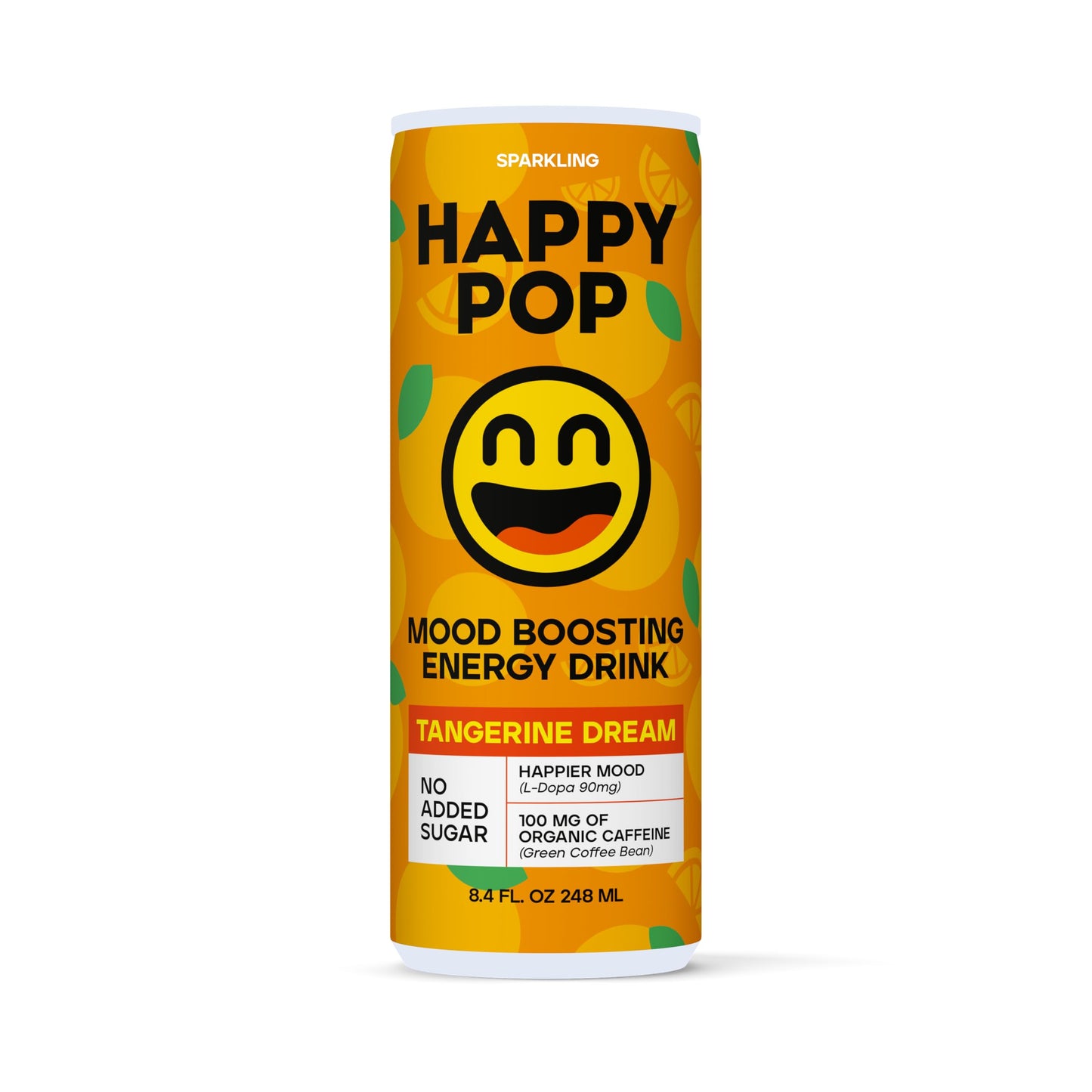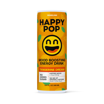 HAPPYPOP® Tangerine Dream Mood Boosting Energy Drink, 8.4 fl oz, No Added Sugar, 100mg Organic Caffeine (Pack of 12)
