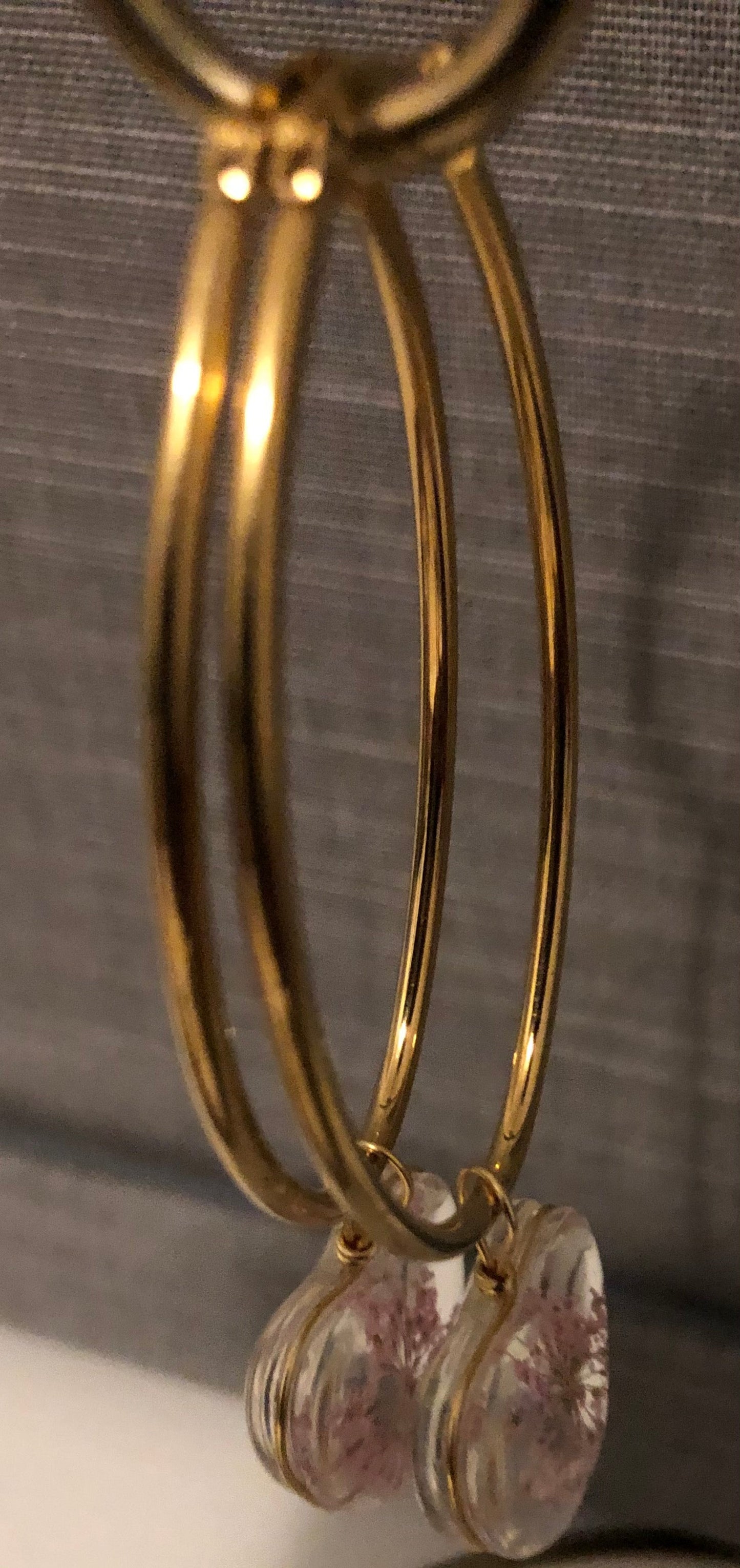 Stand out with our pressed flowered heart earrings on an oval hoop.