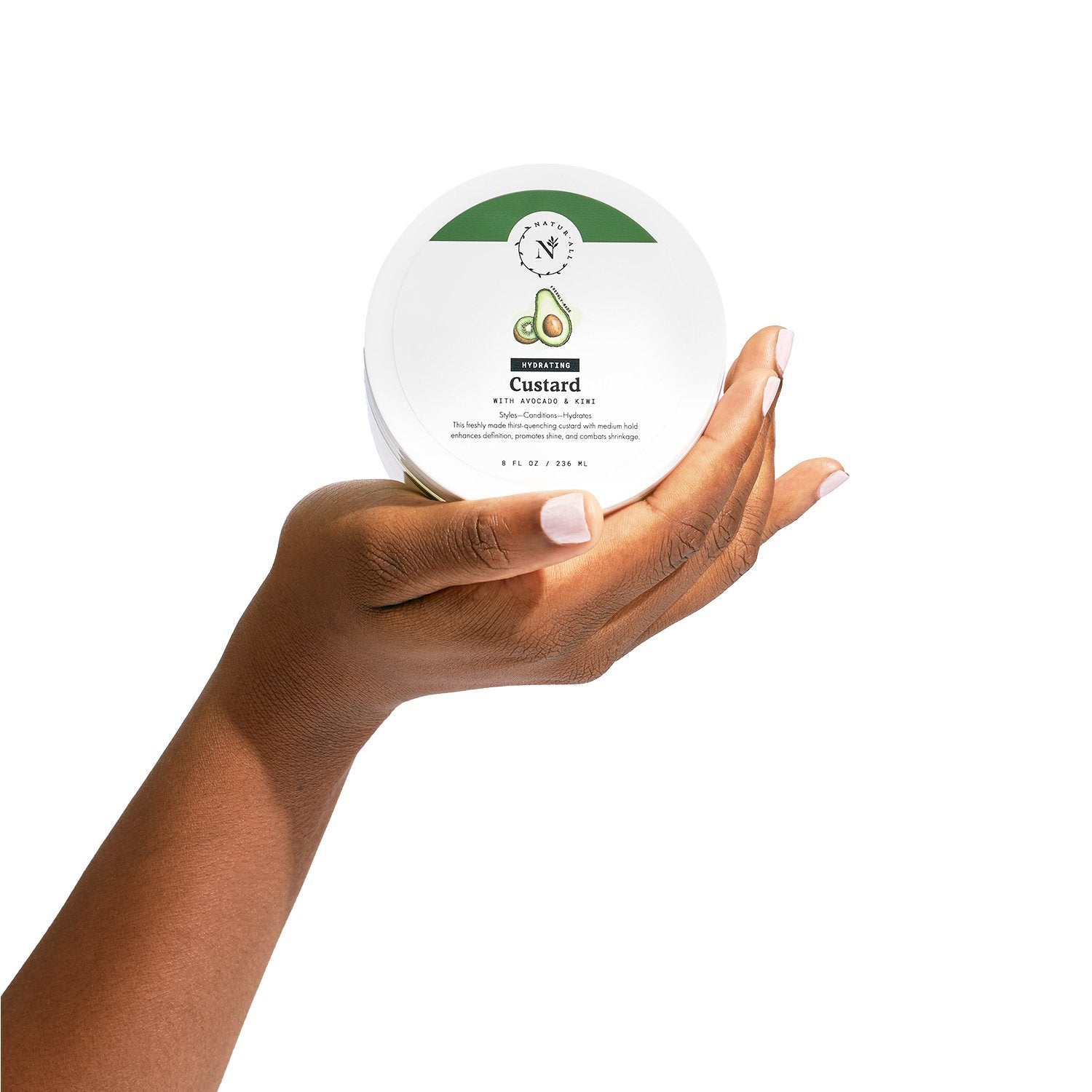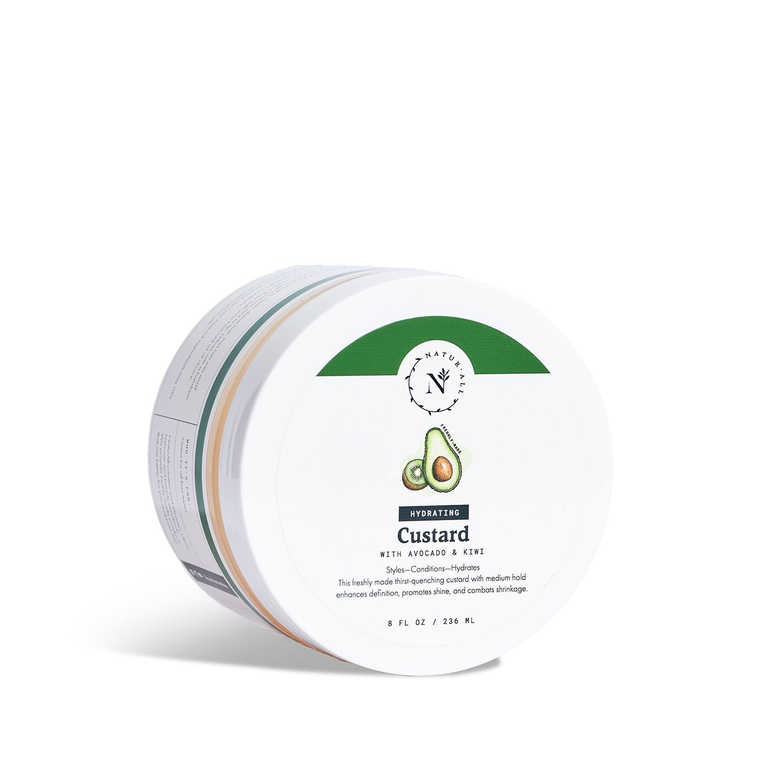 Freshly made Hydrating Custard with Avocado + Kiwi Extract defines and promotes curls with a soft, smooth finish. This medium hold moisturizing styler softens to enhance curls and combat shrinkage.