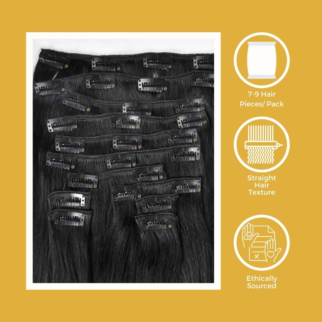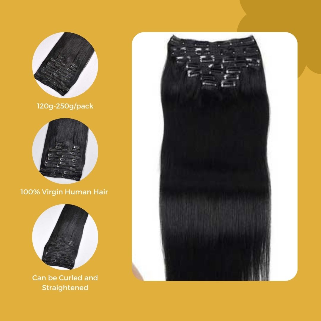 This Jet Black Straight Clip-in will be a great start to your collection of luxurious hair. This is a fashion statement that helps with adding elegance and beauty to every person wearing it.