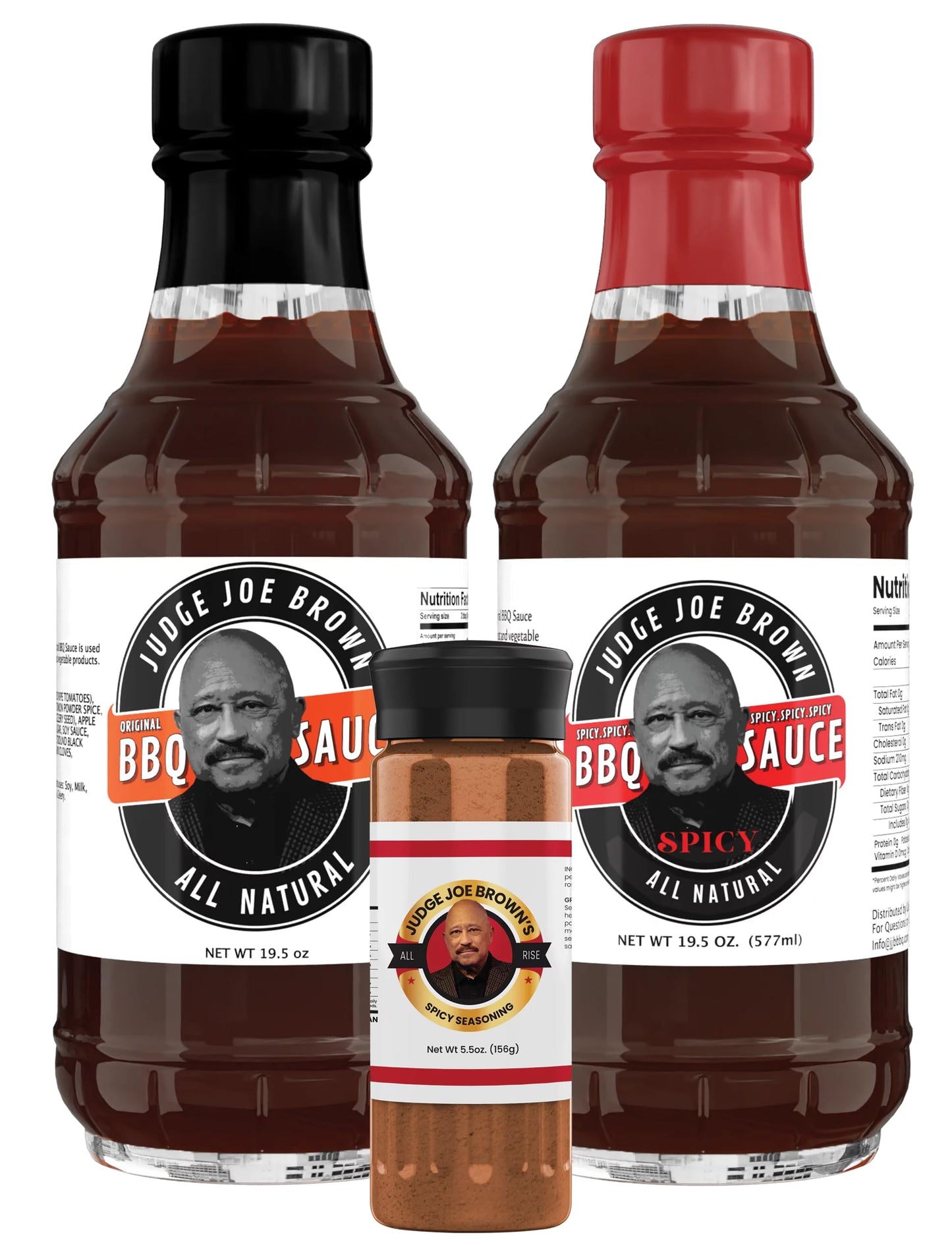 Details: Welcome to Judge Joe Brown’s All-Natural Food Line. Judge Joe Brown Sauce and Seasoning Bundle Includes: 1 Original Barbecue Sauce + 1 Spicy Barbecue Sauce + 1 Spicy All Purpose Seasoning. We are committed to providing you with the highest quality, nutritious, and delicious food options. We believe in the power of nature and its ability to nourish and sustain our bodies. Judge Joe Brown and culinary genius, Chef Damon Stalworth have teamed up with Comedian, Tiffany Haddish to put the flavor back into backyard barbecuing. Our journey began with a deep passion for wholesome, unprocessed ingredients that are free from artificial additives and preservatives