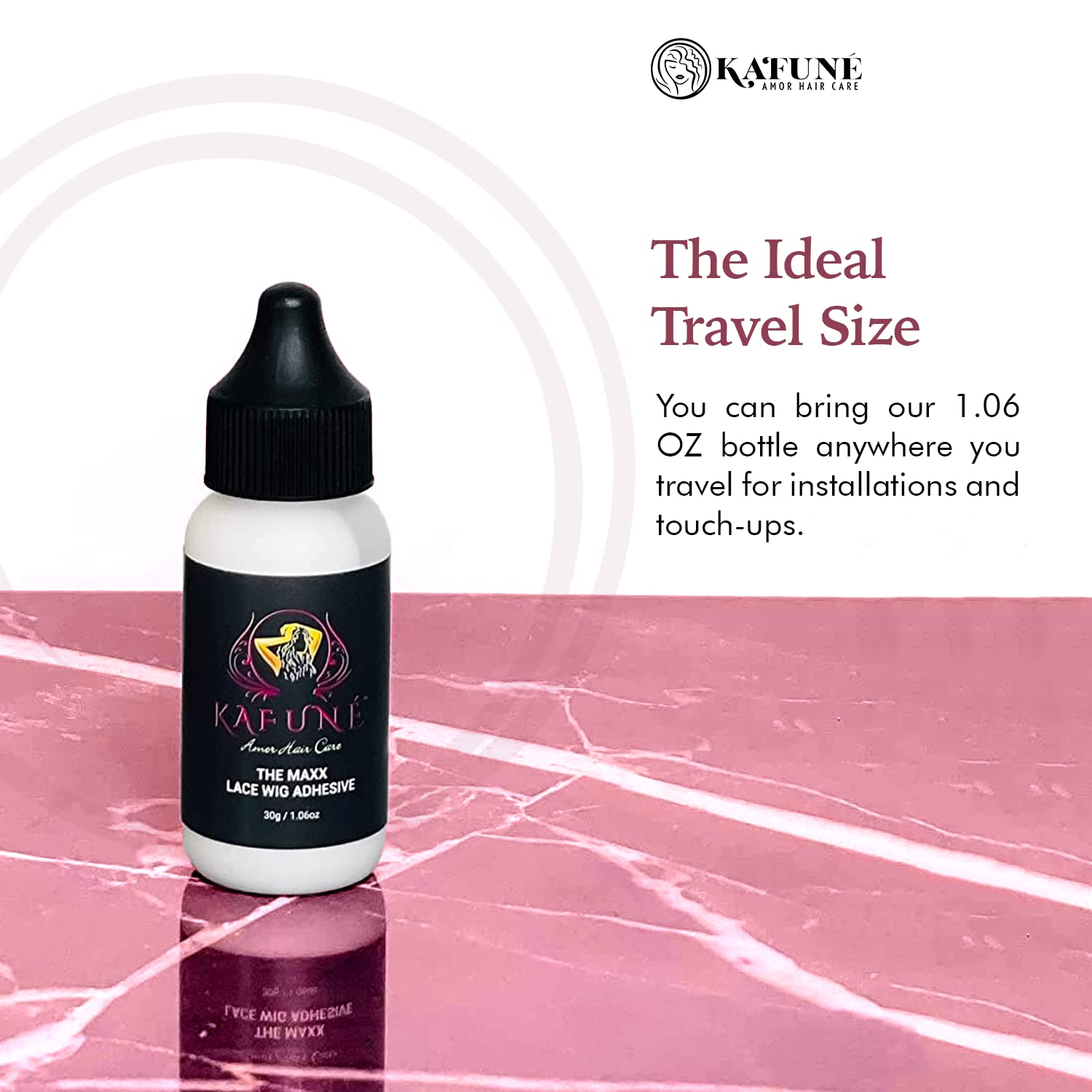 - VERSATILITY AND QUALITY: Kafune Amor MAXX Lace Wig Adhesive is not just for wigs. It's also perfect for securing eyelash extensions. Made with high-quality ingredients, it's the best hair glue you can trust for your lace wigs, waterproof wigs, and lash extensions. Plus, it's compatible with our bold hold lace tape for an even stronger hold.