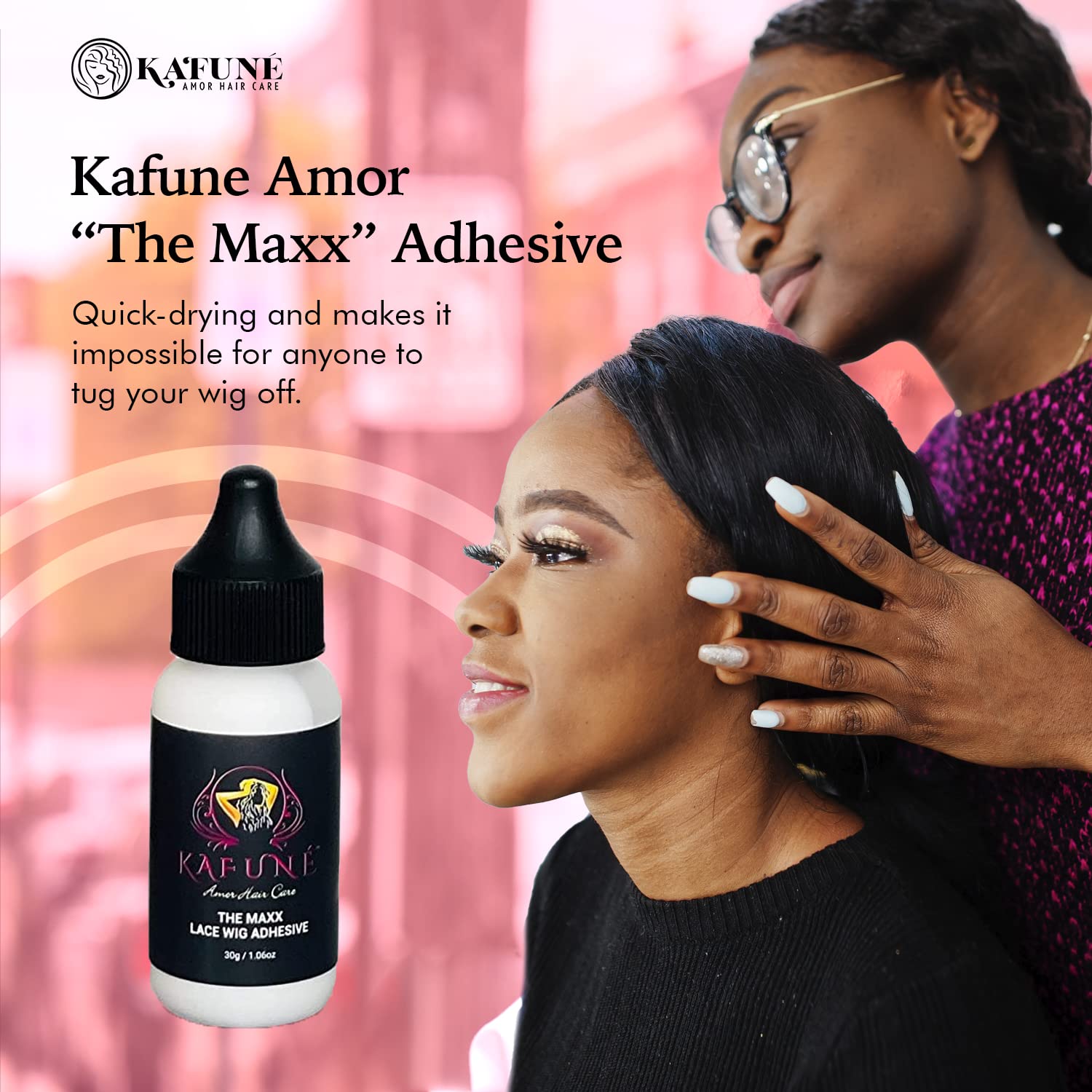 - EASY APPLICATION AND REMOVAL: Kafune Amor MAXX Lace Wig Adhesive is easy to apply and easy to remove without damaging your natural hair or your wig. It's the perfect choice for lace wigs, waterproof wigs, and even eyelash extensions. Enjoy a worry-free, flawless look every time.
