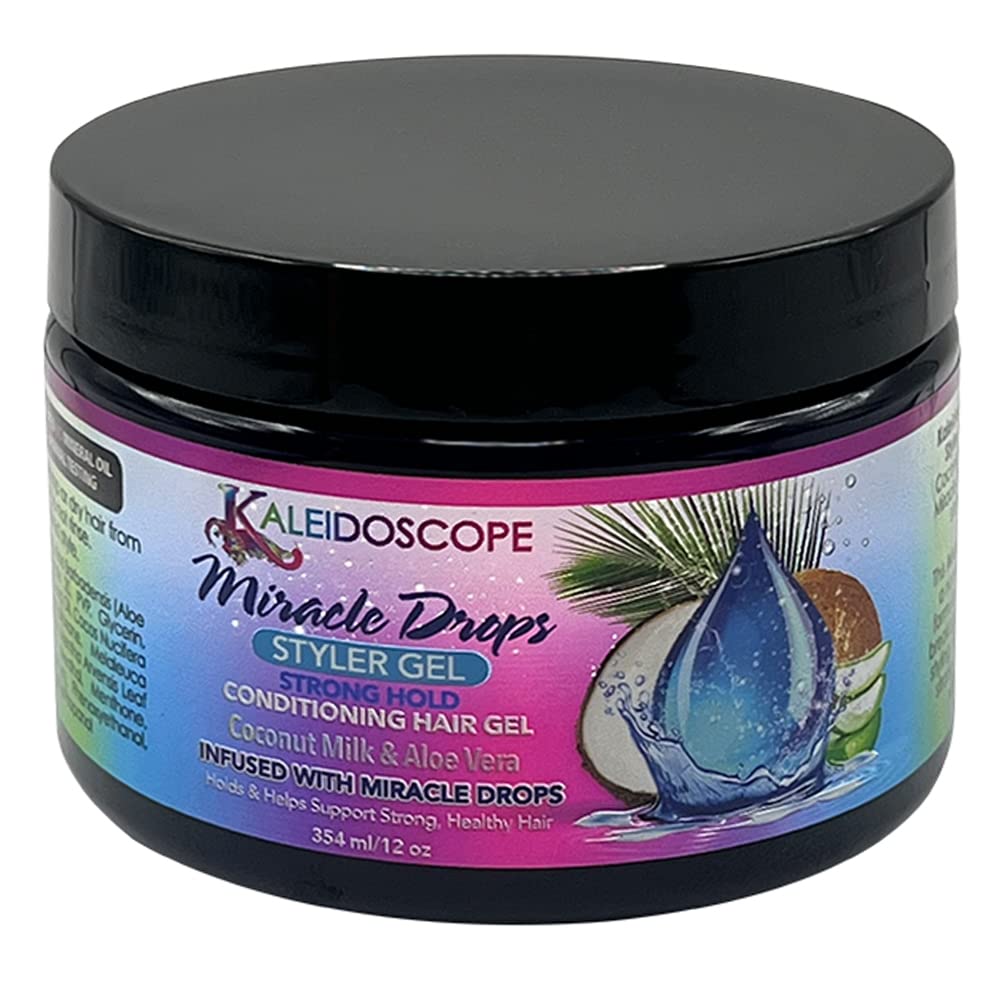 Kaleidoscope - Miracle Drops Collection – Coconut Milk, Honey & Aloe Vera, Rice Water Moisturizing Blend – Shampoo, Conditioner, Leave-In Conditioner, 3 Minute Mask, Styling Gel, Styling Foam – Hair Care Bundle 6 Pcs Set