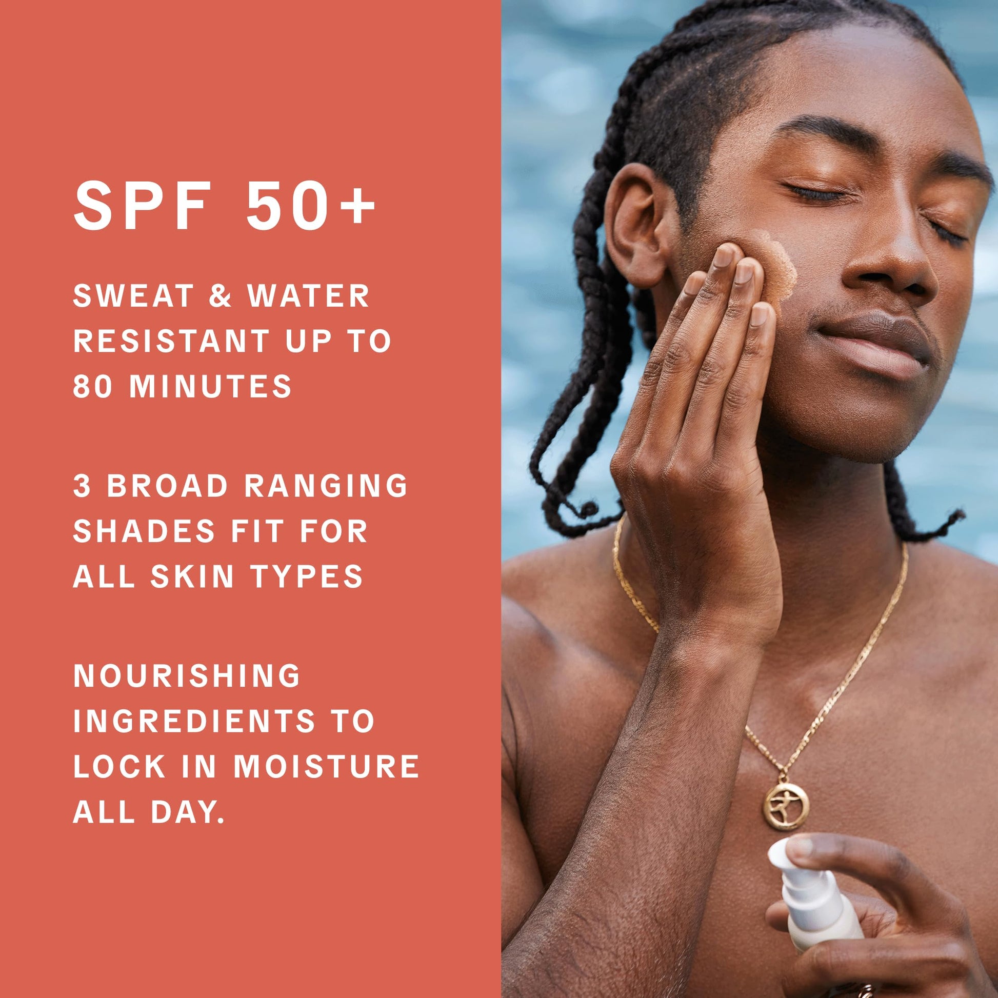 - GOLDEN RAYS SUNSCREEN SPF 50+ - Nourishing botanical sunscreen with broad spectrum SPF 50 and 100% mineral based zinc oxide that helps filter blue light while supporting long-lasting hydration. Moisturizing tint perfects skin, giving it a sun-kissed dewy base layer and a tinted moisturizer with SPF 50. Sweat and water-resistant sunscreen for mineral UVA/UVB defense.