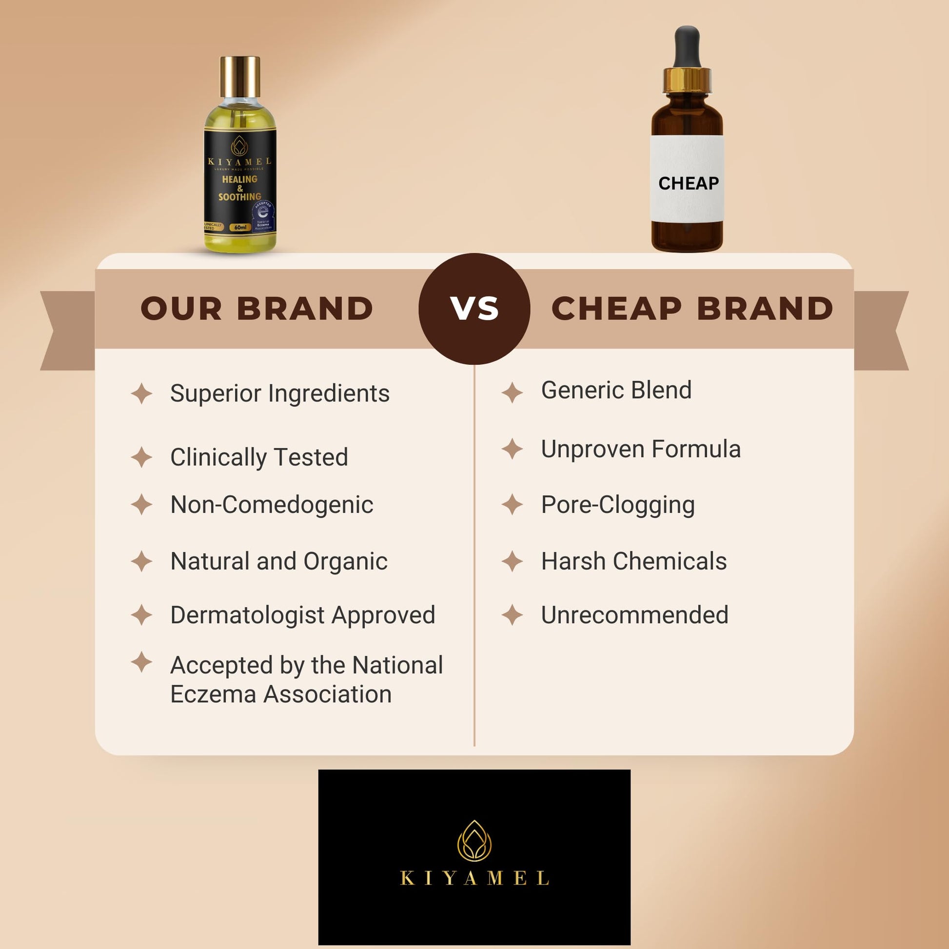- Women-Owned Small Business – KIYAMEL has developed an entire line of body skin care products and argan oil for skin that help you maintain softer, healthier skin while diminishing blemishes, so you can always look and feel your best and most confident inside and out.