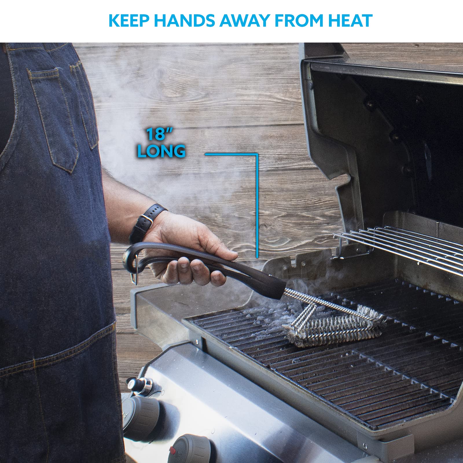 - PERFECT HANDLE LENGTH: This 18" wire grill brush's design offers easy control, while keeping your hands safely away from the heat. Unlike shorter BBQ brushes for grill cleaner, it requires less effort, while avoiding the bulkiness of longer brushes.